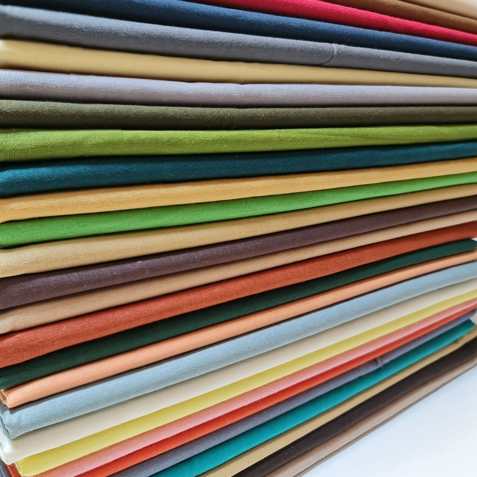 Über 30 Farben, einfarbig, 100 % Baumwolle, Stoff, Fat Quarter, Art Quilting, Meterware, 111,8 cm