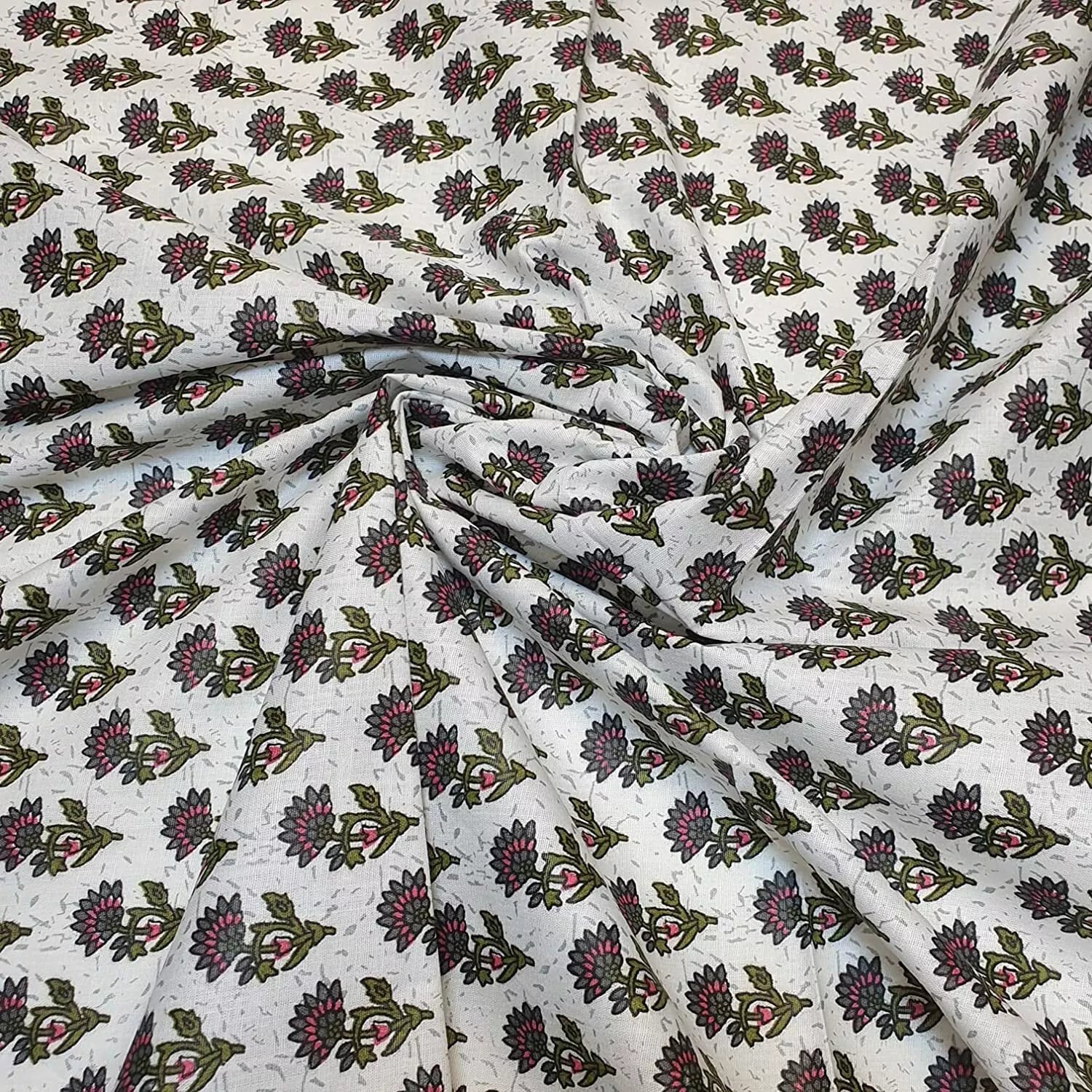 Black Flower 100% Cotton Baby Ivory Leopard Ditsy Floral Dress Craft Material Meter (20 Meter Roll)