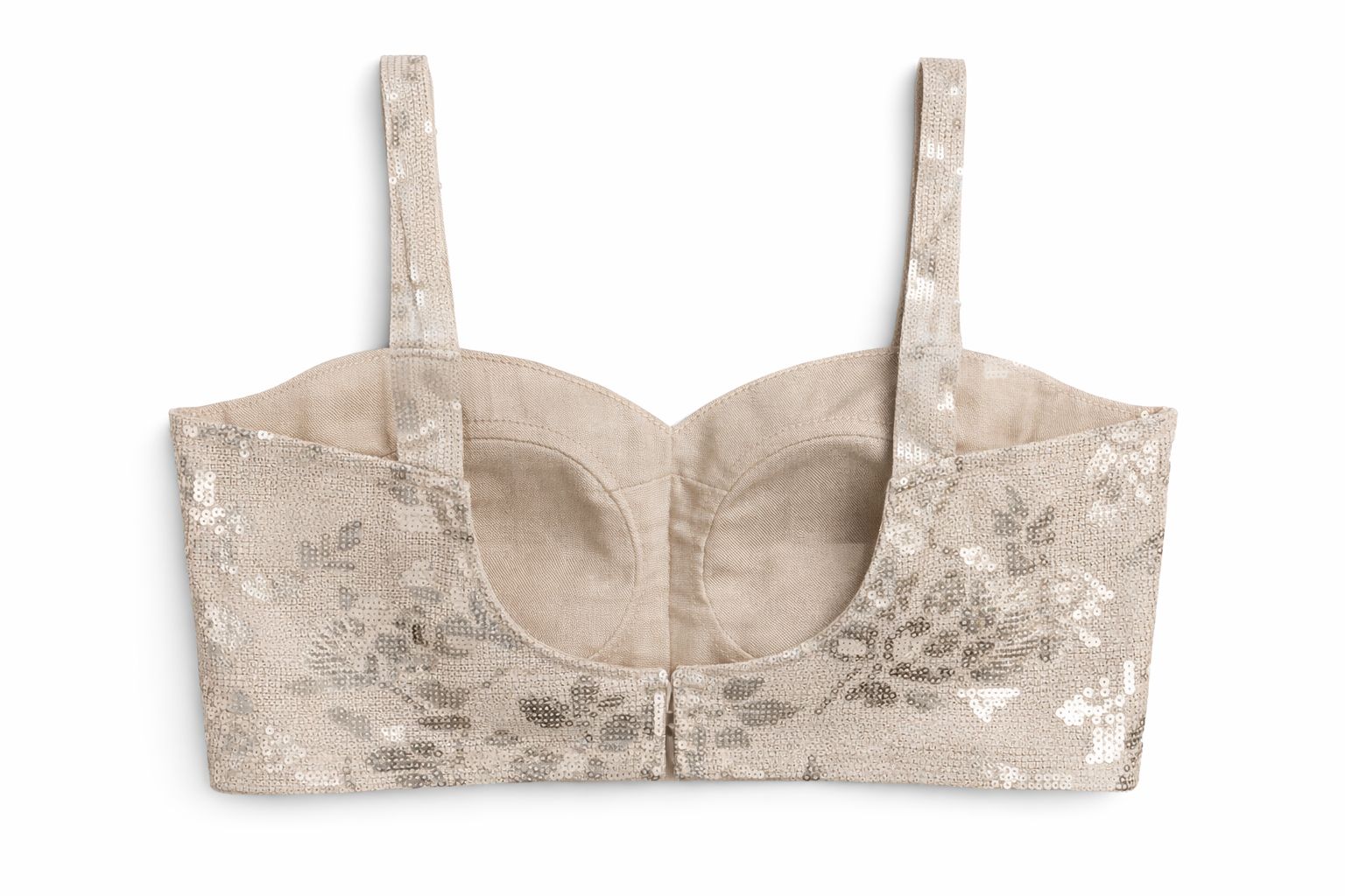 The structured sweetheart neckline enhances the silhouette, while the broad embellished straps add both comfort and style. The soft champagne gold tone gives it a luxurious, versatile appeal that pairs beautifully with sarees and lehengas in gold, ivory, beige, pastel, or jewel tones.