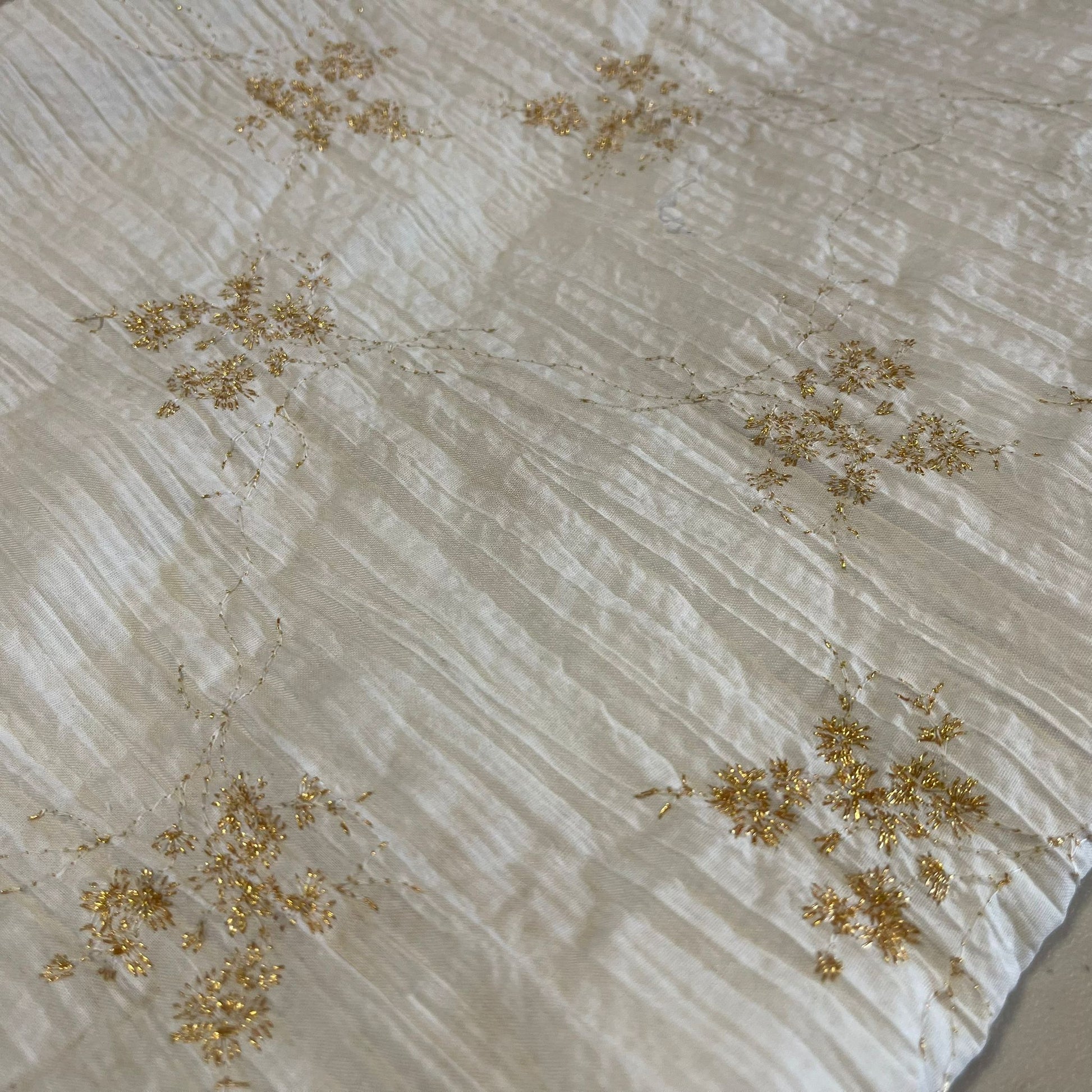 Cream Floral Metallic Embroidery 100% Cotton Crush Fabric Crinkle Craft Dress Costume Material 50 " By The Meter