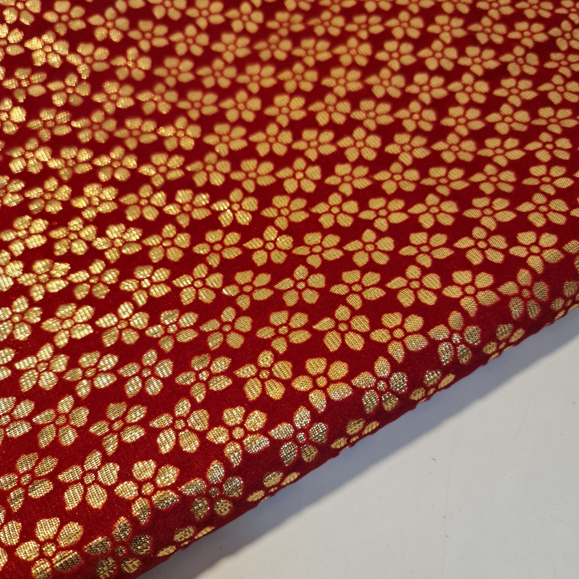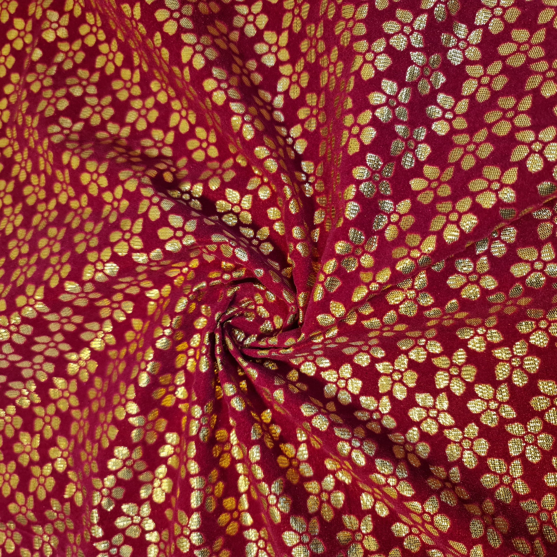 Deep Red Gold Glitter Foil Lame Material Emboss Velvet Floral Flock Décor Craft Dress Fabric 44" By Meter