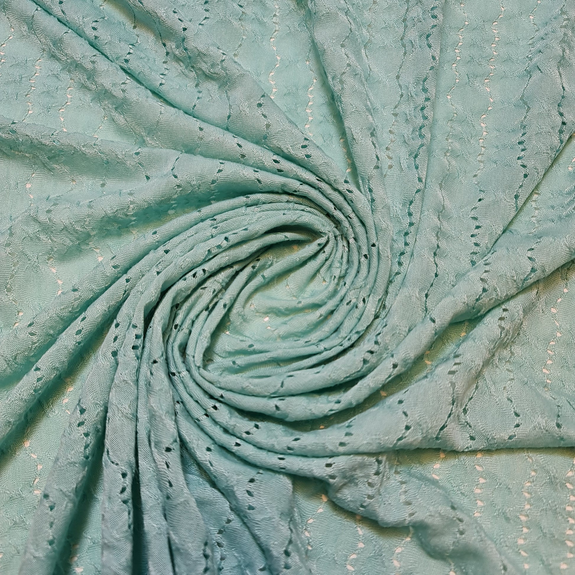 Mint Broderie Viscose Jersey Material Dress Craft Costume Fabric 58" By The Meter