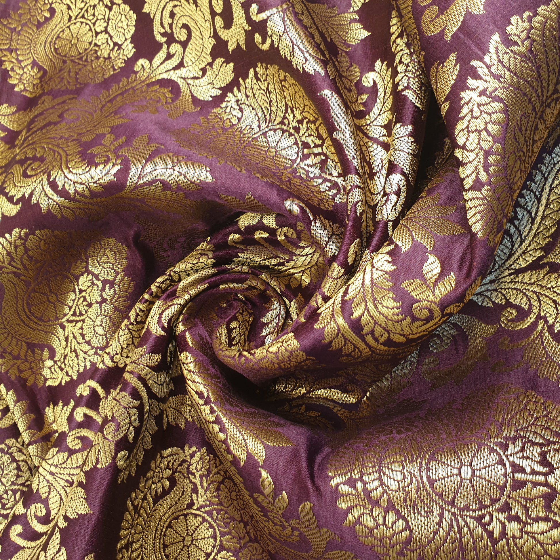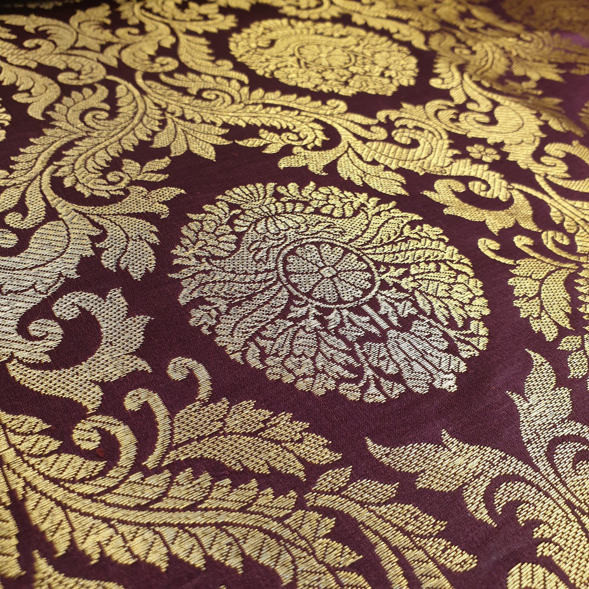 Ornamentaler Paisley Gold Metallic Druck Indischer Banarasi Brokat Stoff Meterware