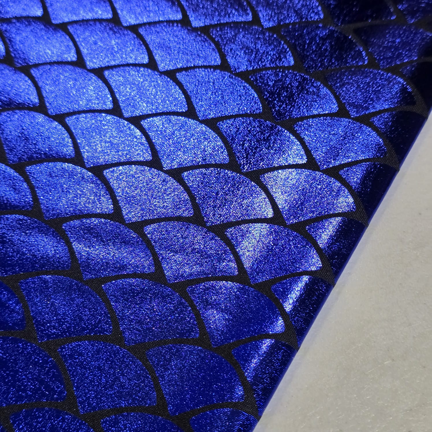 Royal Blue Metallic Mermaid Scale ITY Stretch Foil Reptile Snake Skin Dance Costume Fabric 58" By The Meter