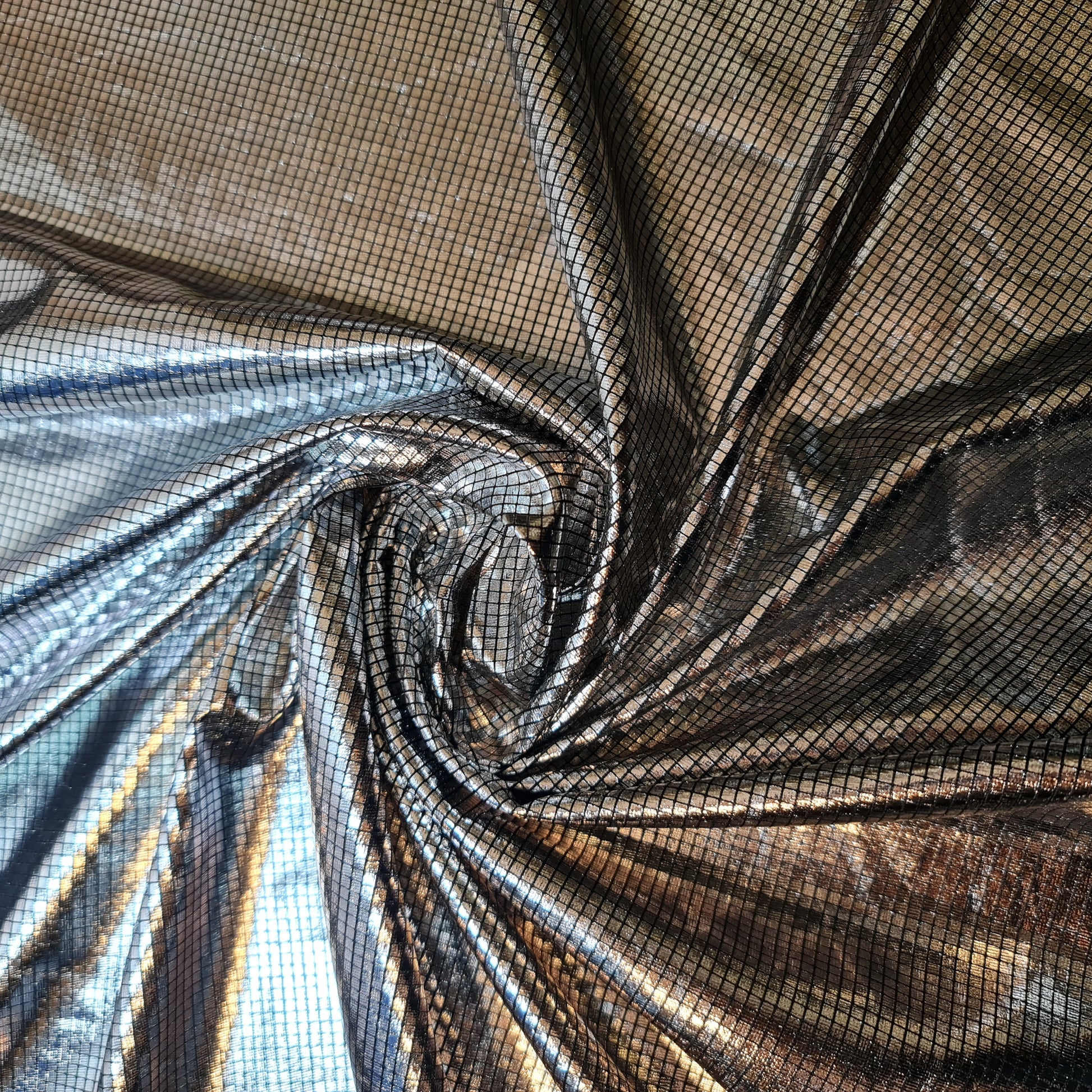 Dieser metallische Trikot-Laméstoff eignet sich perfekt für die Herstellung atemberaubender Kostüme, Tanzbekleidung und Weihnachtsdekorationen. Der Stoff weist ein geometrisches Muster auf und besteht aus synthetischen Polyesterfasern mit einer Fadendichte von 200. Er ist leicht und so geschnitten und genäht, dass ein einzigartiger Look entsteht. Der Stoff wird meterweise verkauft und eignet sich für eine Vielzahl von Bastelprojekten, darunter Kleidung, Vorhänge, Handschuhe, Loungewear und Polster. Die Breite des Stoffes beträgt 58 Zoll und er ist ideal für alle, die Hobbys und Basteln mögen. Egal, ob Sie ein Kostüm für eine Hochzeit oder ein Tanzoutfit für ein Kind herstellen, dieser Stoff verleiht Ihrem Projekt mit Sicherheit einen Hauch von Eleganz und Stil.