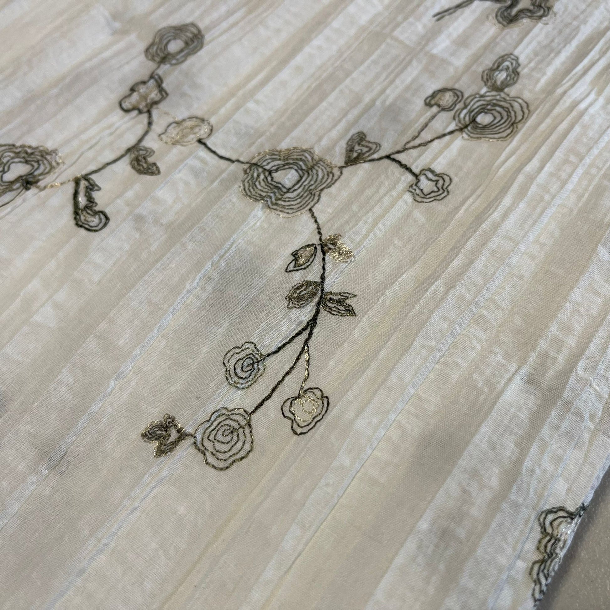 White Metallic Zari Floral Embroidery 100% Cotton Crush Fabric Crinkle Craft Dress Costume Material 50 " By The Meter