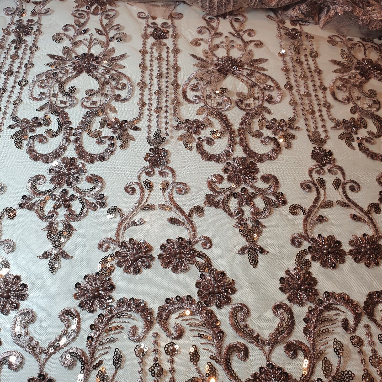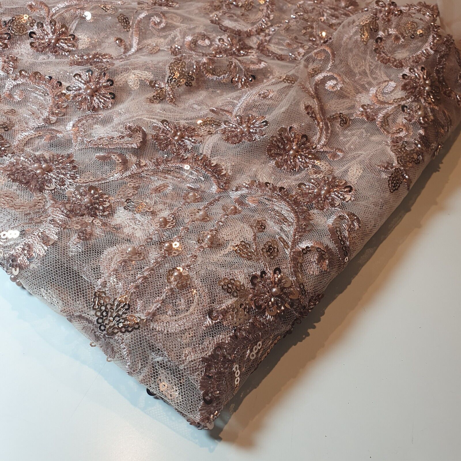 WINTER PINK FLORAL Premium Mesh Netzstoff Floral Diamante Stickerei Kleid Bastelstoff 58" Meterware
