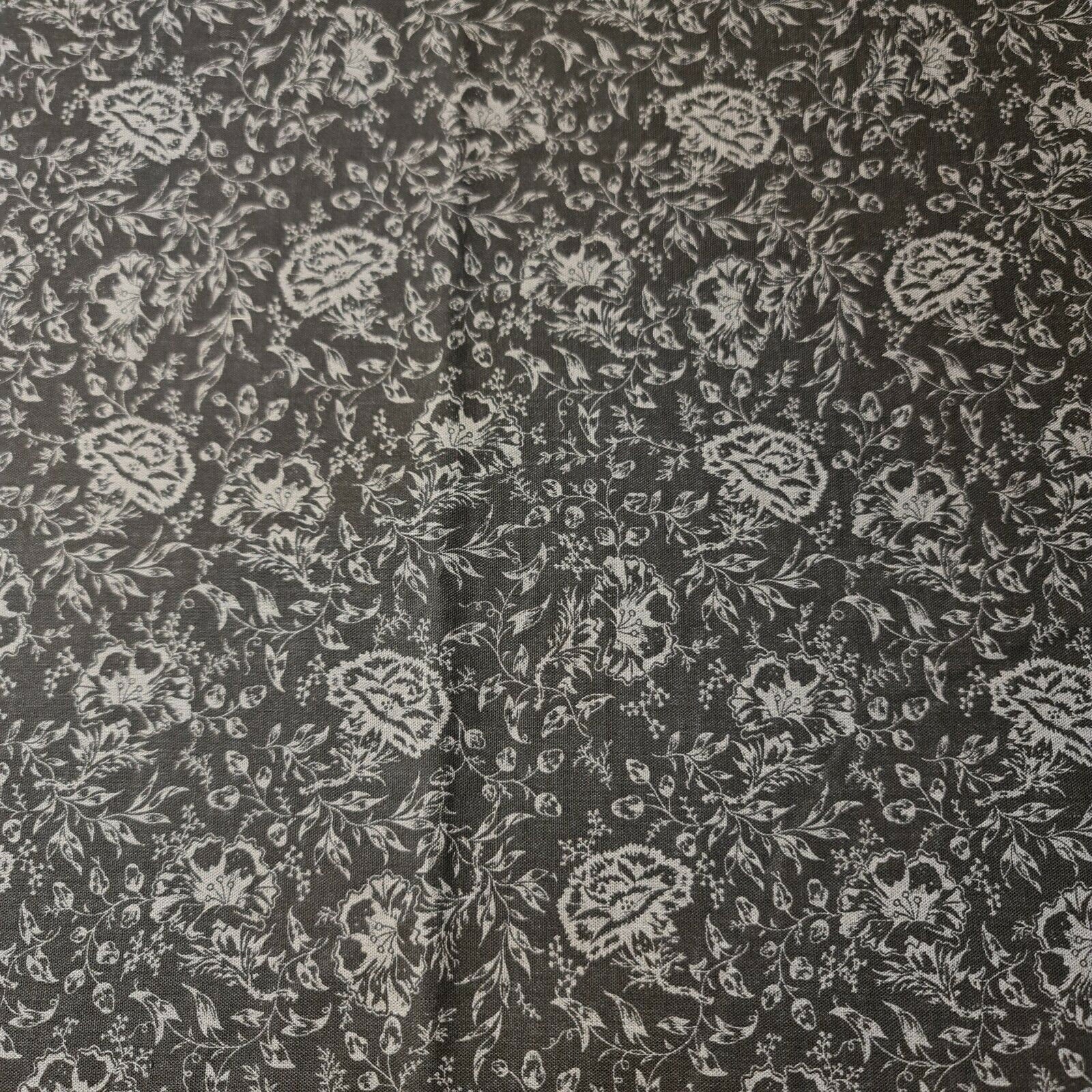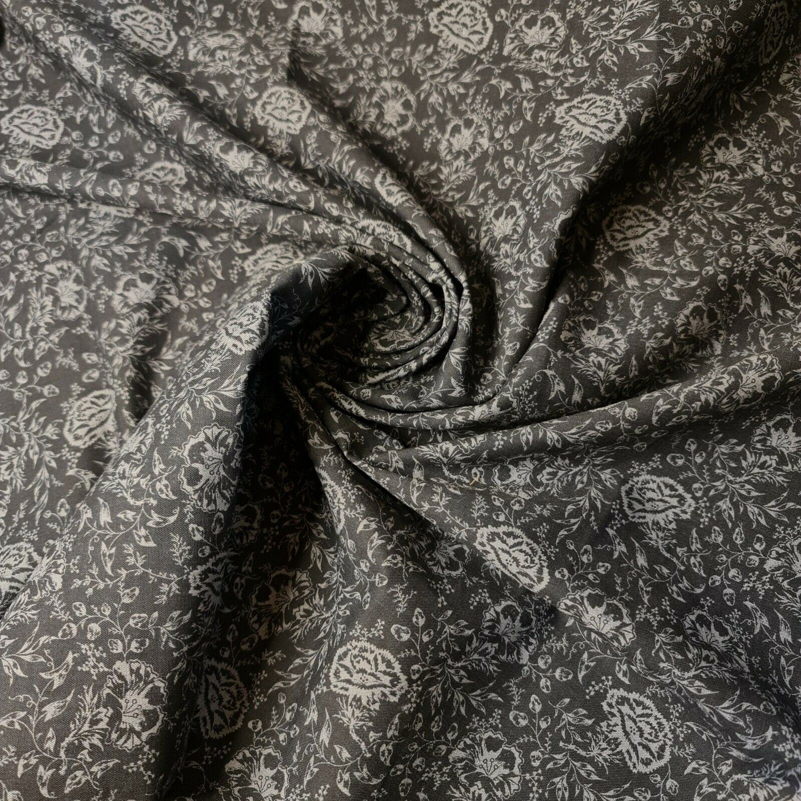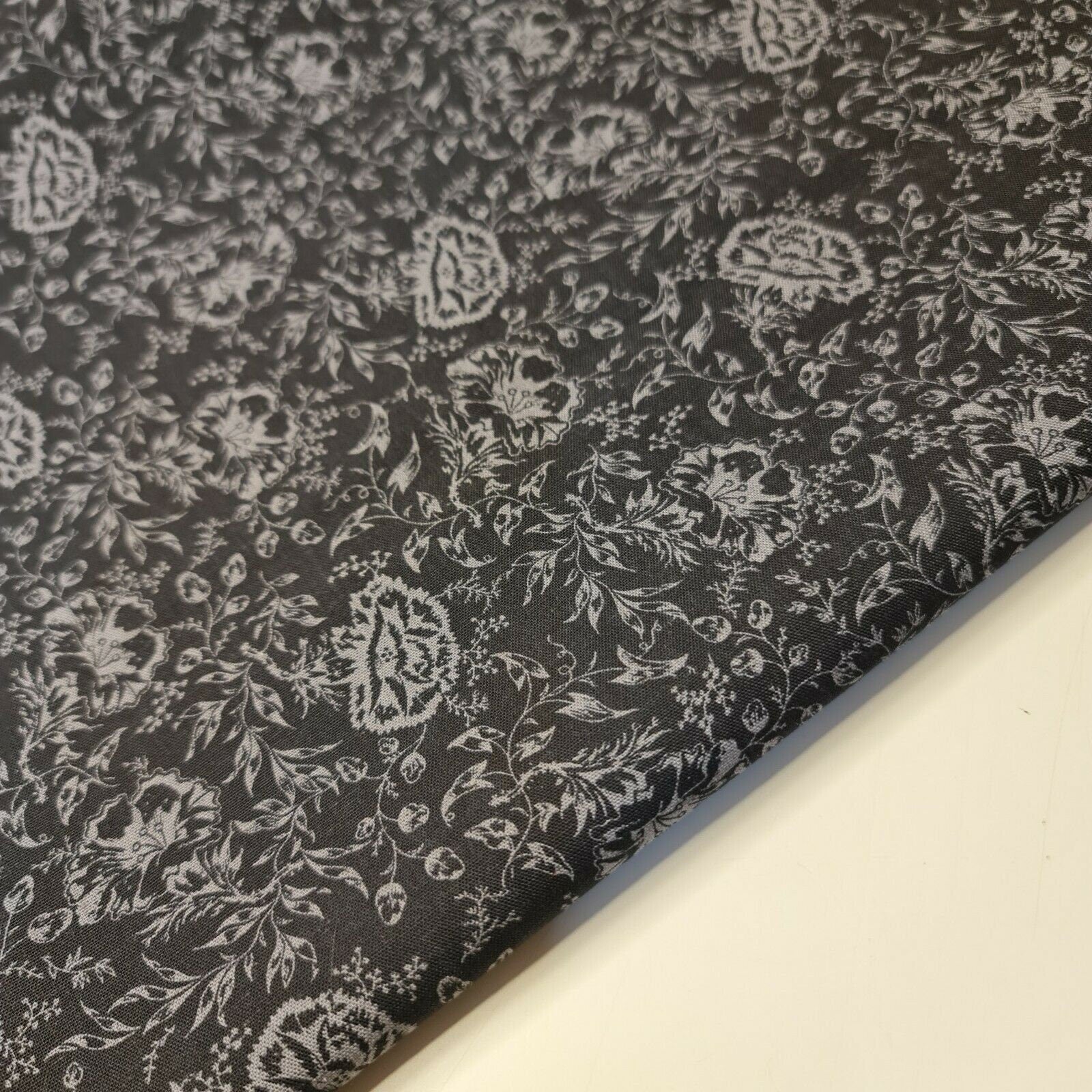 100% Cotton Black Grey Floral Dress Craft Vinatge Fabric 58" By The Meter