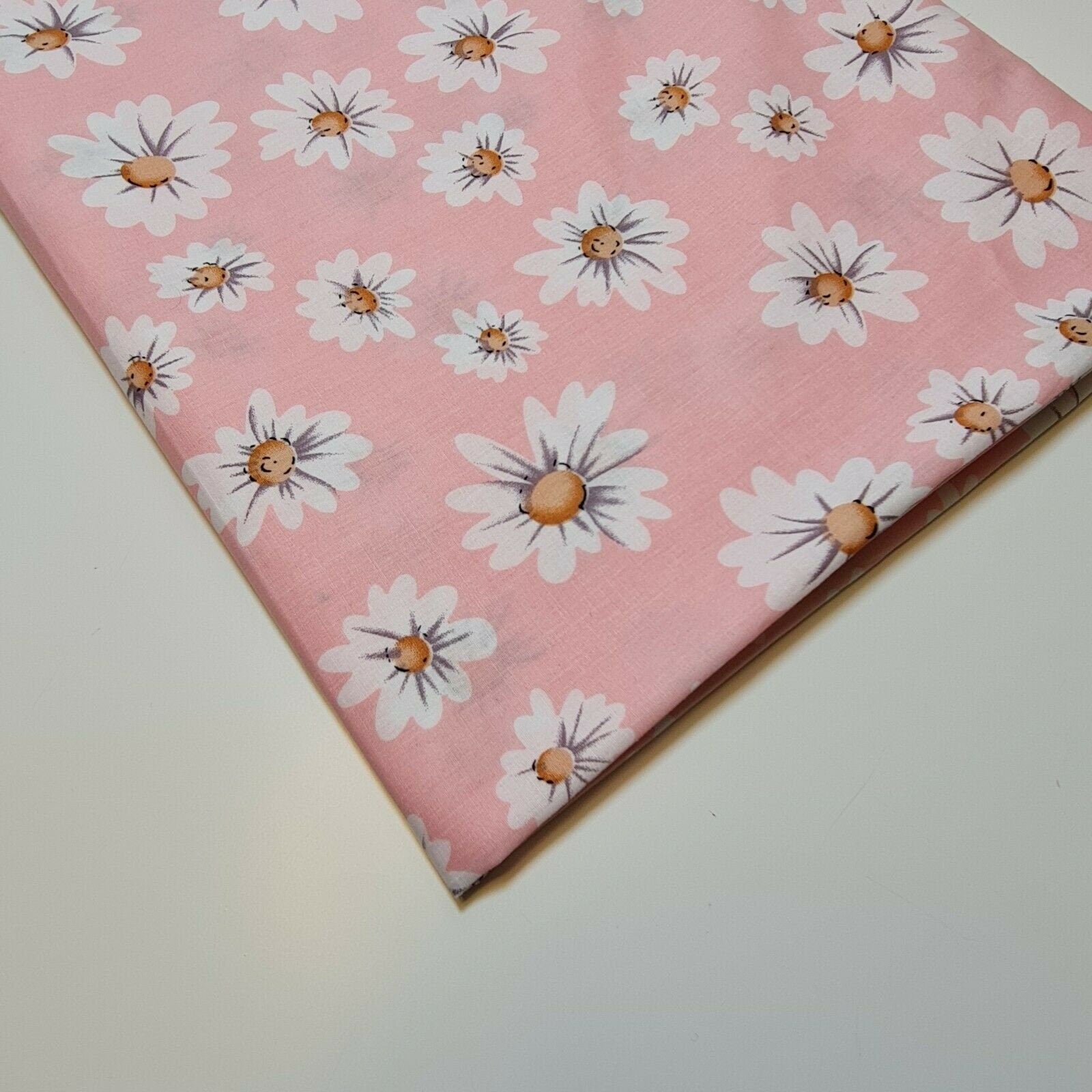 Pink 100% Cotton Poplin Daisy Flower Fabric Dress Craft Quilting Costume Material 58" By The Meter