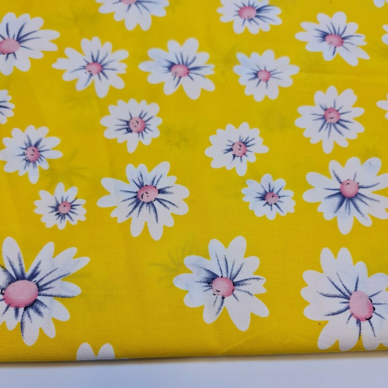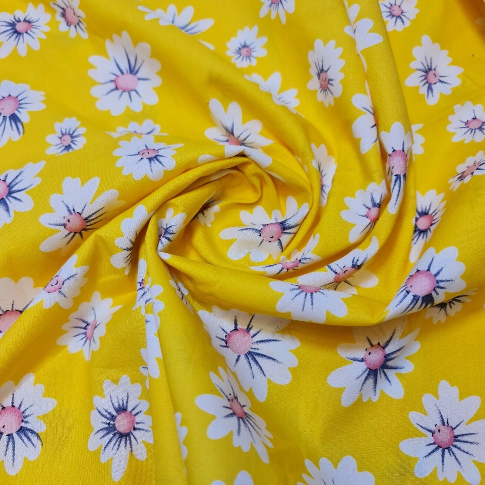 Yellow 100% Cotton Poplin Daisy Flower Fabric Dress Craft Quilting Costume Material 58" By The Meter