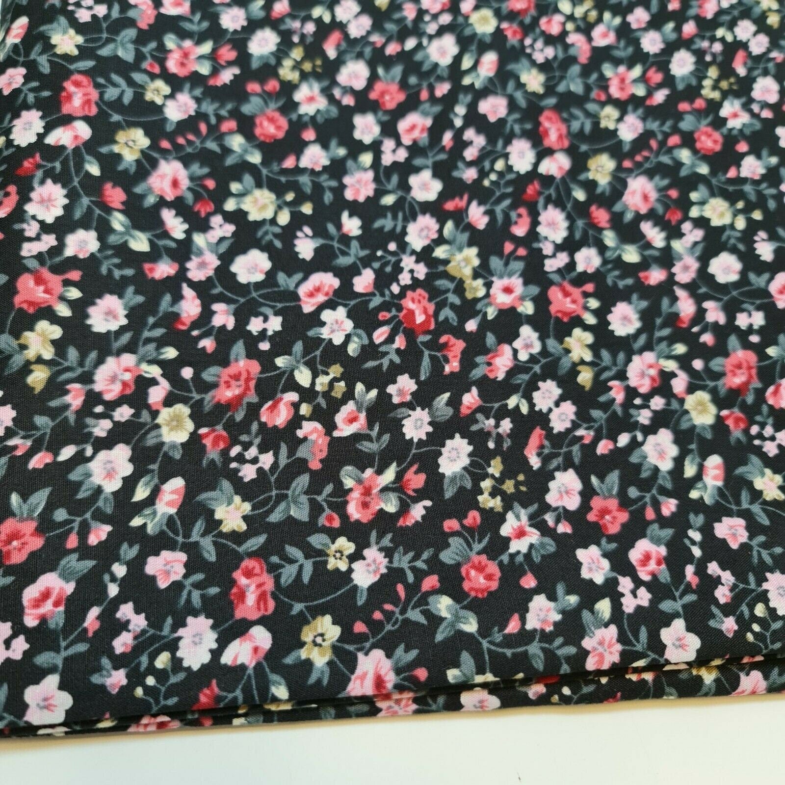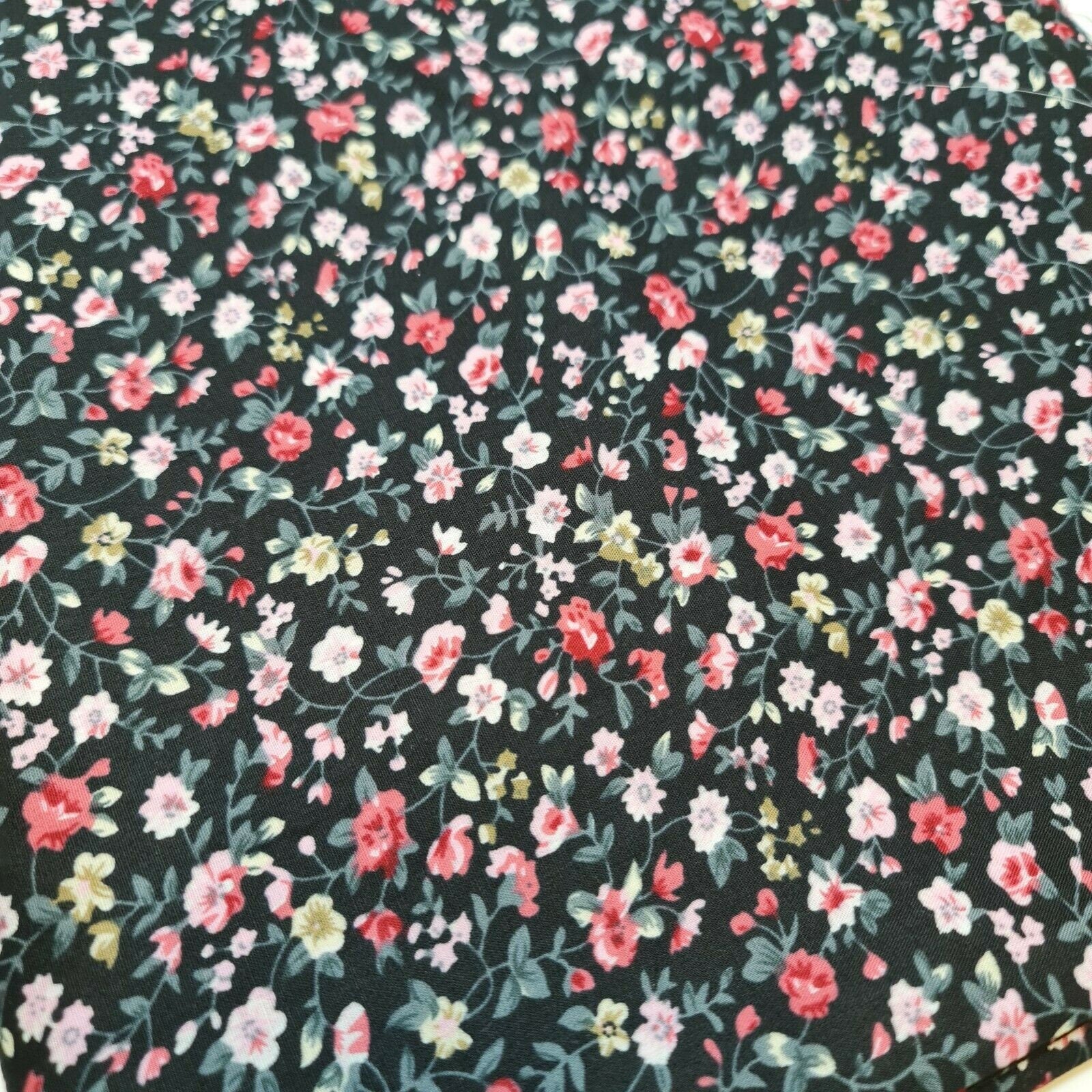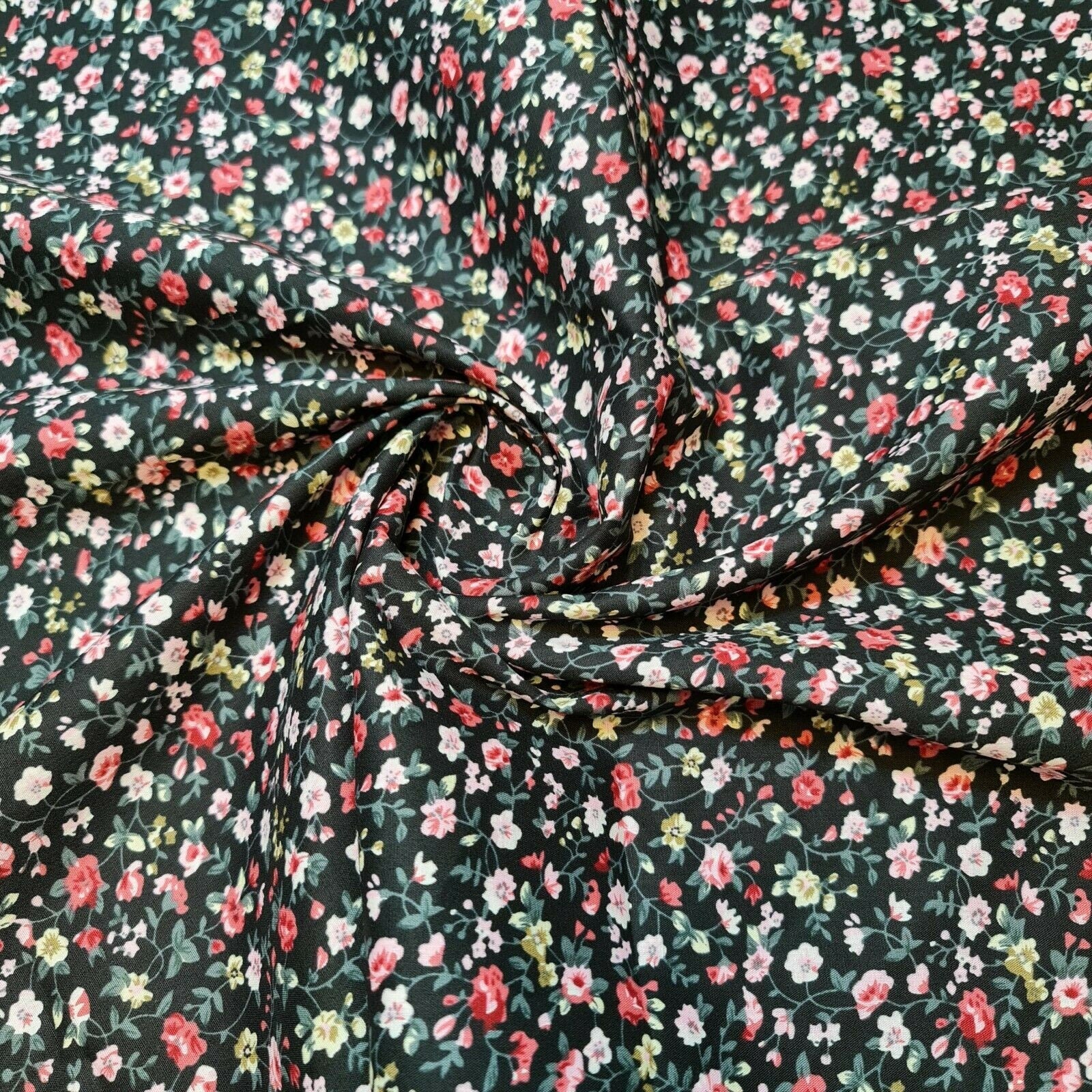 This 100% cotton poplin fabric features a charming floral print, making it a perfect choice for dressmaking, quilting, and creative craft projects. With a smooth, soft texture and breathable quality, this fabric ensures both comfort and durability.