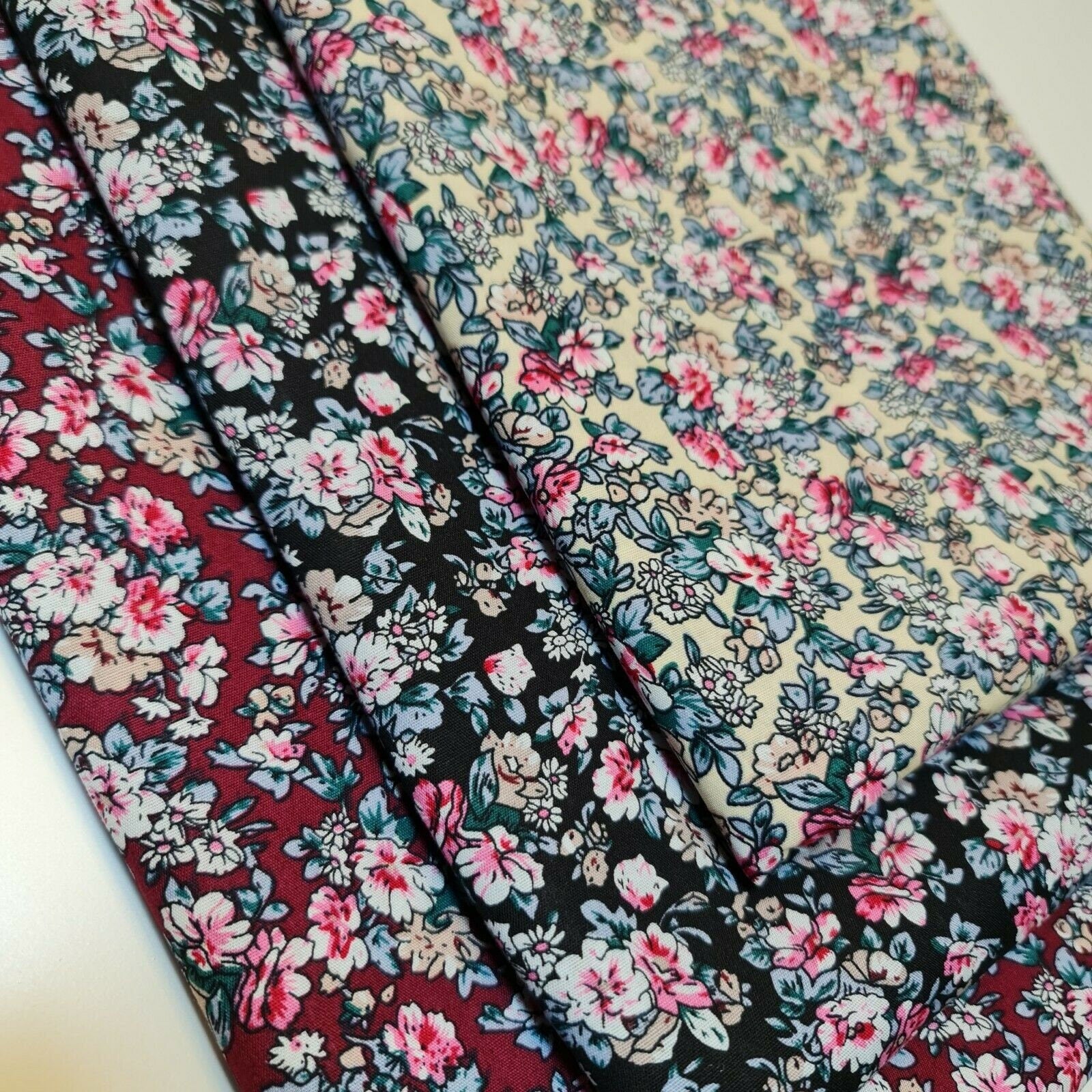 This 100% cotton poplin fabric features a charming floral print, making it a perfect choice for dressmaking, quilting, and creative craft projects. With a smooth, soft texture and breathable quality, this fabric ensures both comfort and durability.
