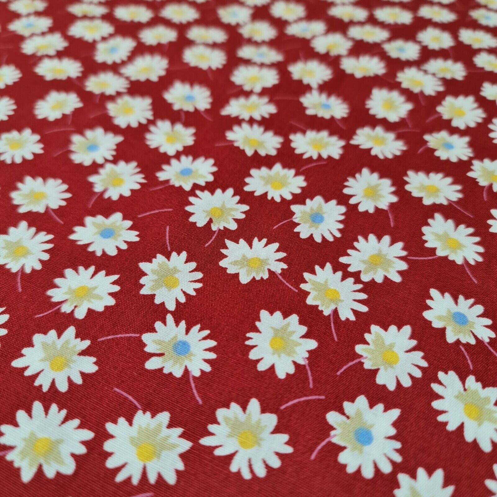 Red 100% Cotton Poplin Daisy Flower Fabric Dress Craft Quilting Costume Material 58" By The Meter