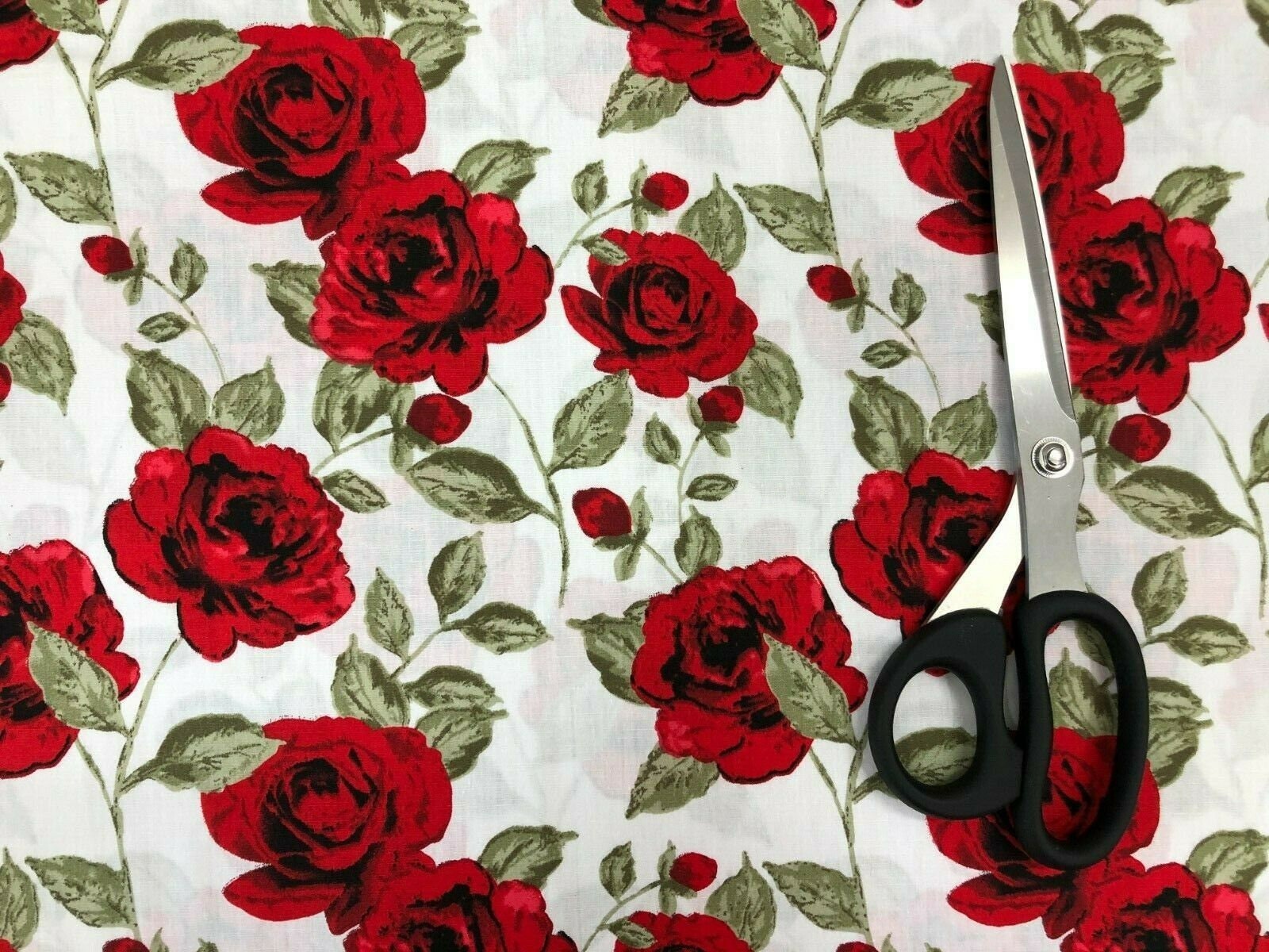 100% Cotton Poplin Red Rose Print Fabric Dress Craft Soft Fabric 58"