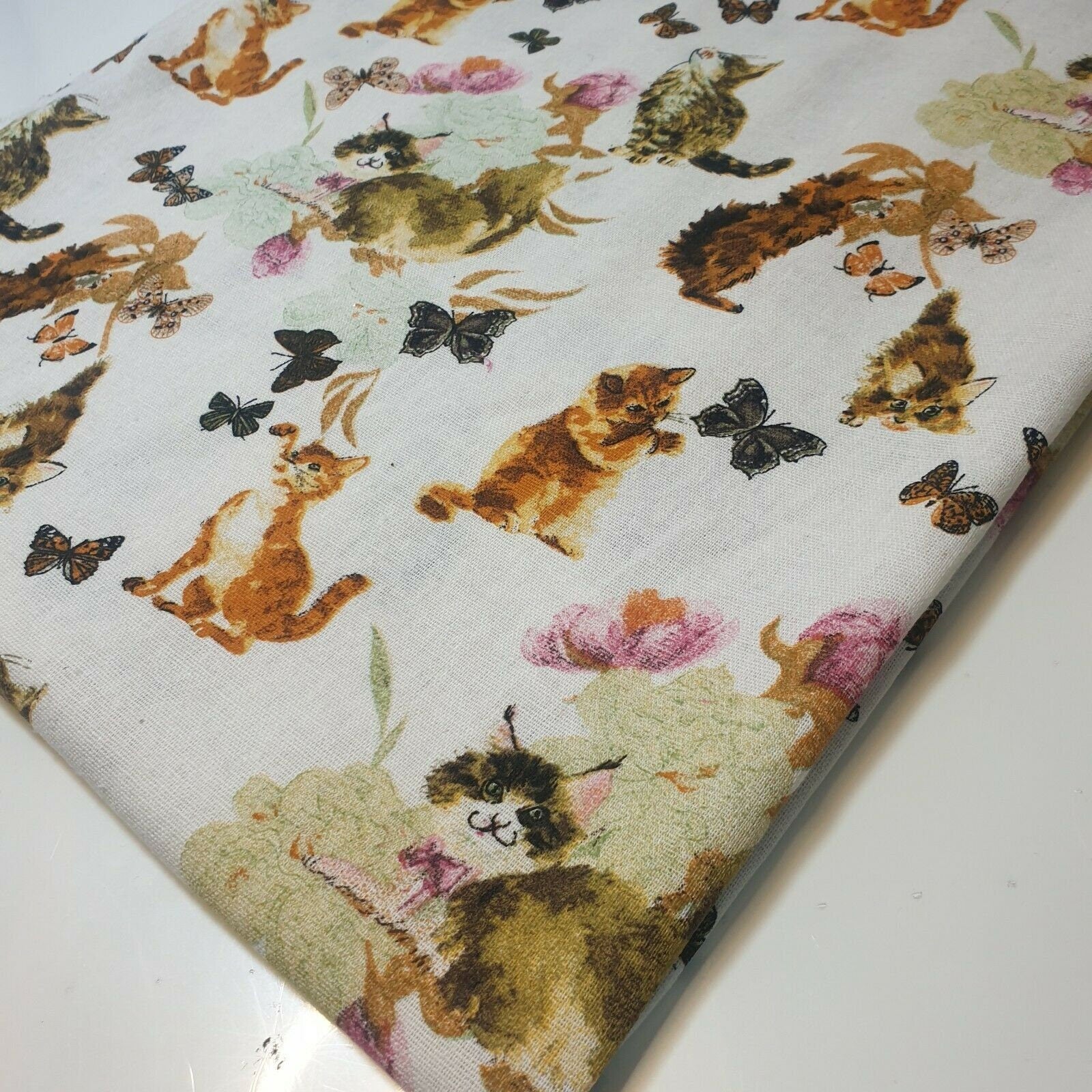 Cat and Butterflies 100% Cotton Printed Canvas Craft Fabric Dress Soft Furnishing Costume Material 58"