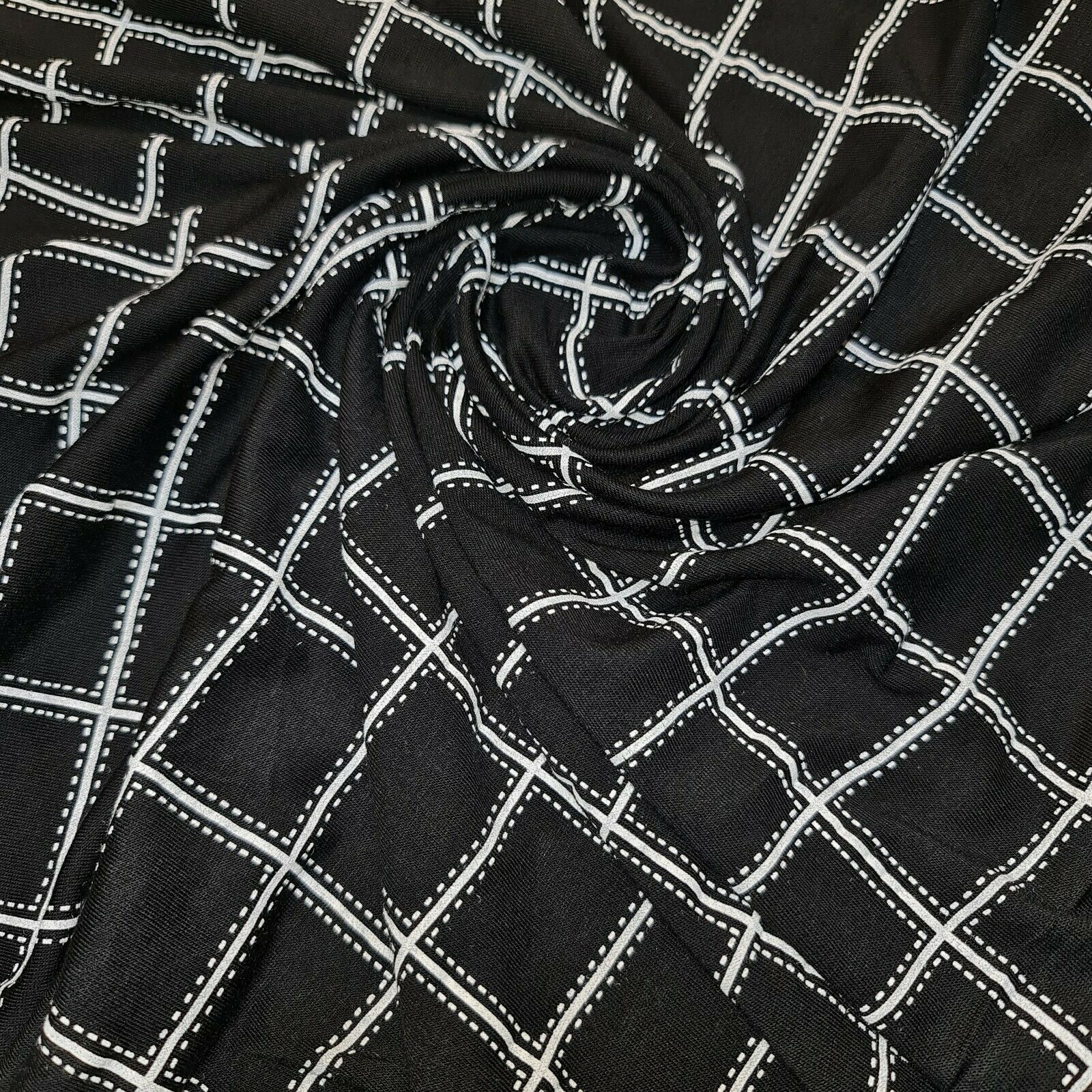 Black Check Viscose Jersey Fabric Dress Craft Costume Material 58" By The Meter