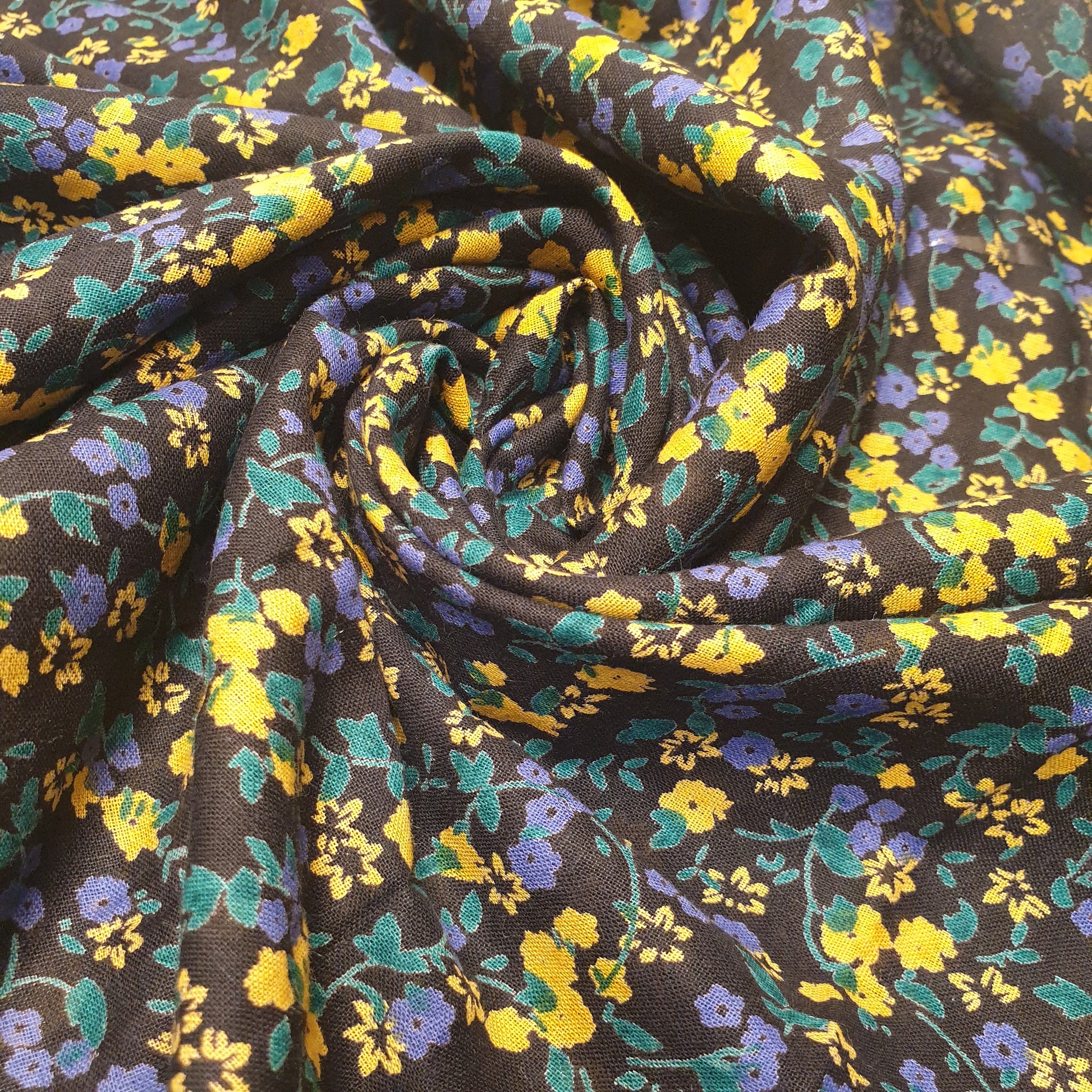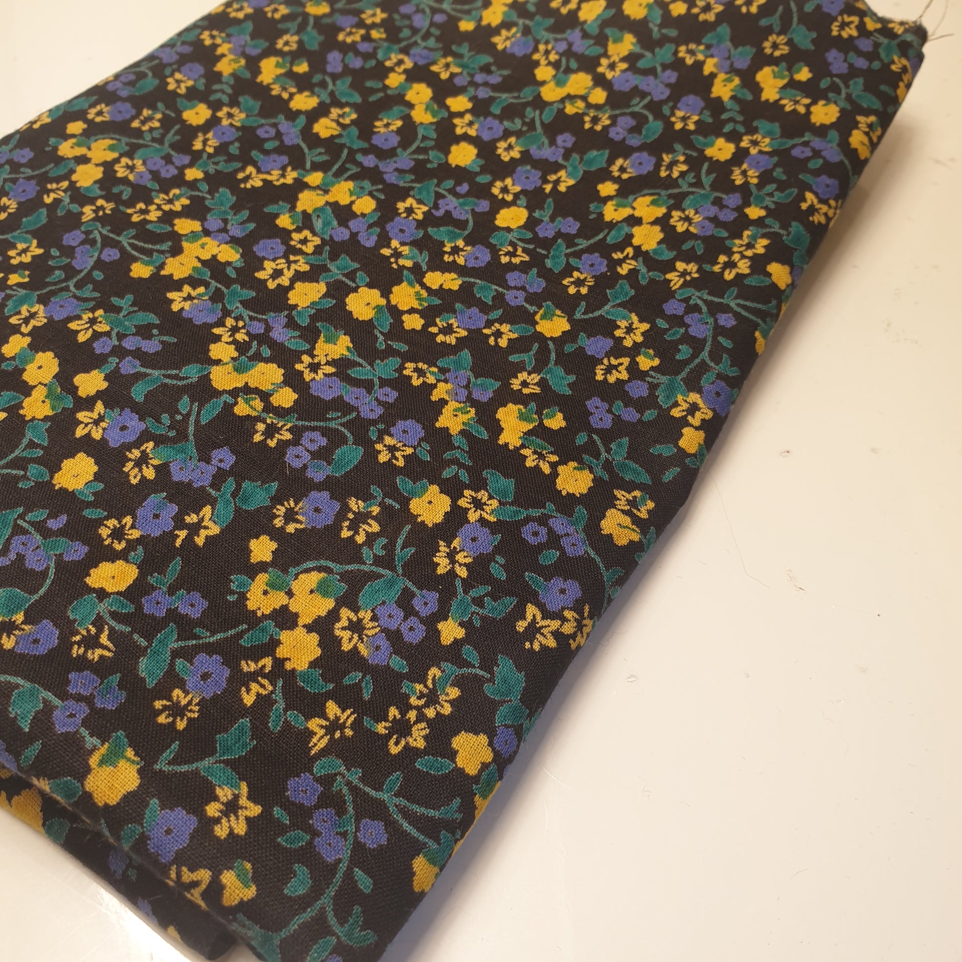 Black Ditsy Floral 100% Cotton Lawn Fabric Craft Quilting Patchwork Material Meter 44"