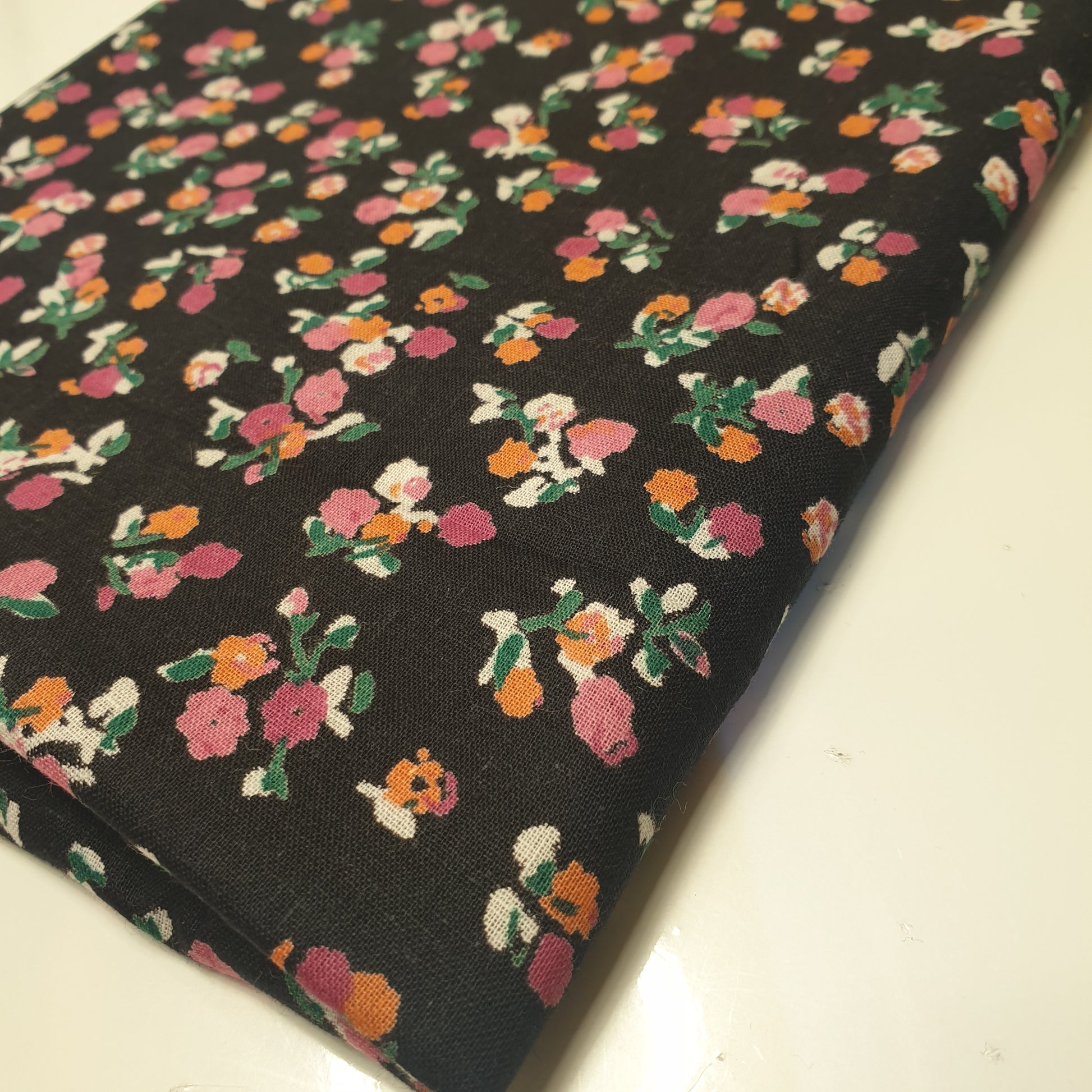 Black Floral 100% Cotton Lawn Fabric Craft Quilting Patchwork Material Meter 44"