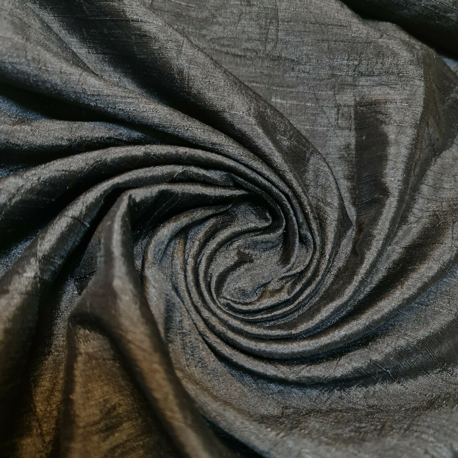 Black Plain Raw Silk Faux Dupion 100% Polyester Upholstery Fabric Bridal Material 44" By The Meter