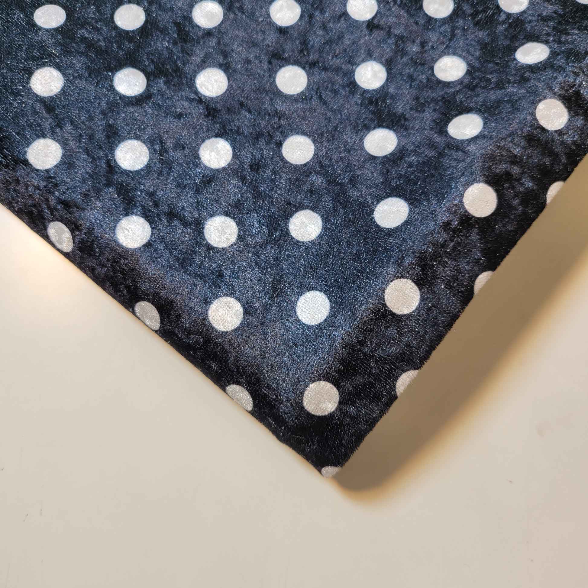 Shop premium Polka Print Crush Velour Velvet Fabric, 58" wide per meter. Ideal for dresses, patchwork, upholstery, and craft projects. Soft, luxurious, and durable fabric perfect for fashion, home décor, and creative sewing.