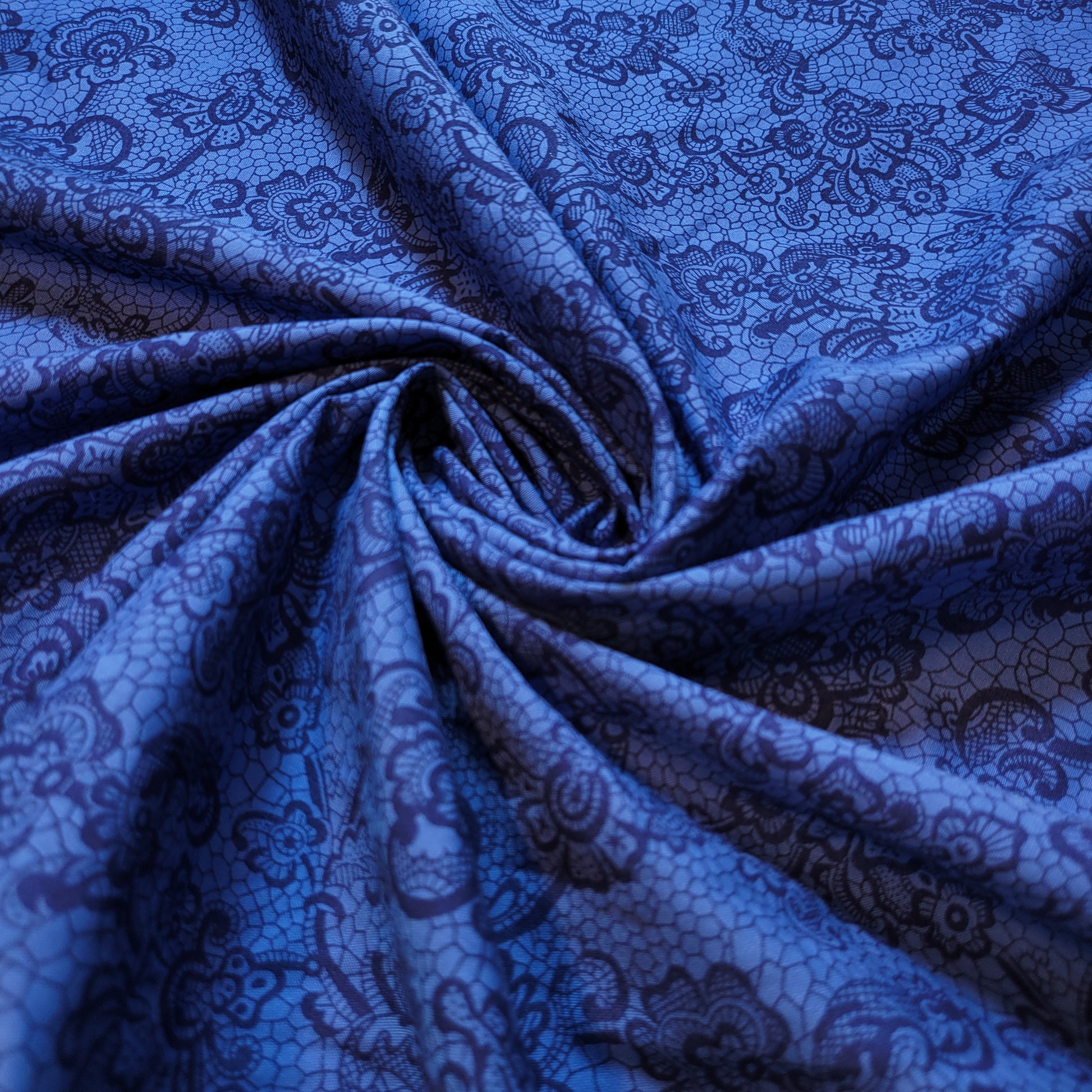 Blue Floral 100% Cotton Vintage Material Novelty Floral Dress Craft Quilting Fabric 44" By The Meter