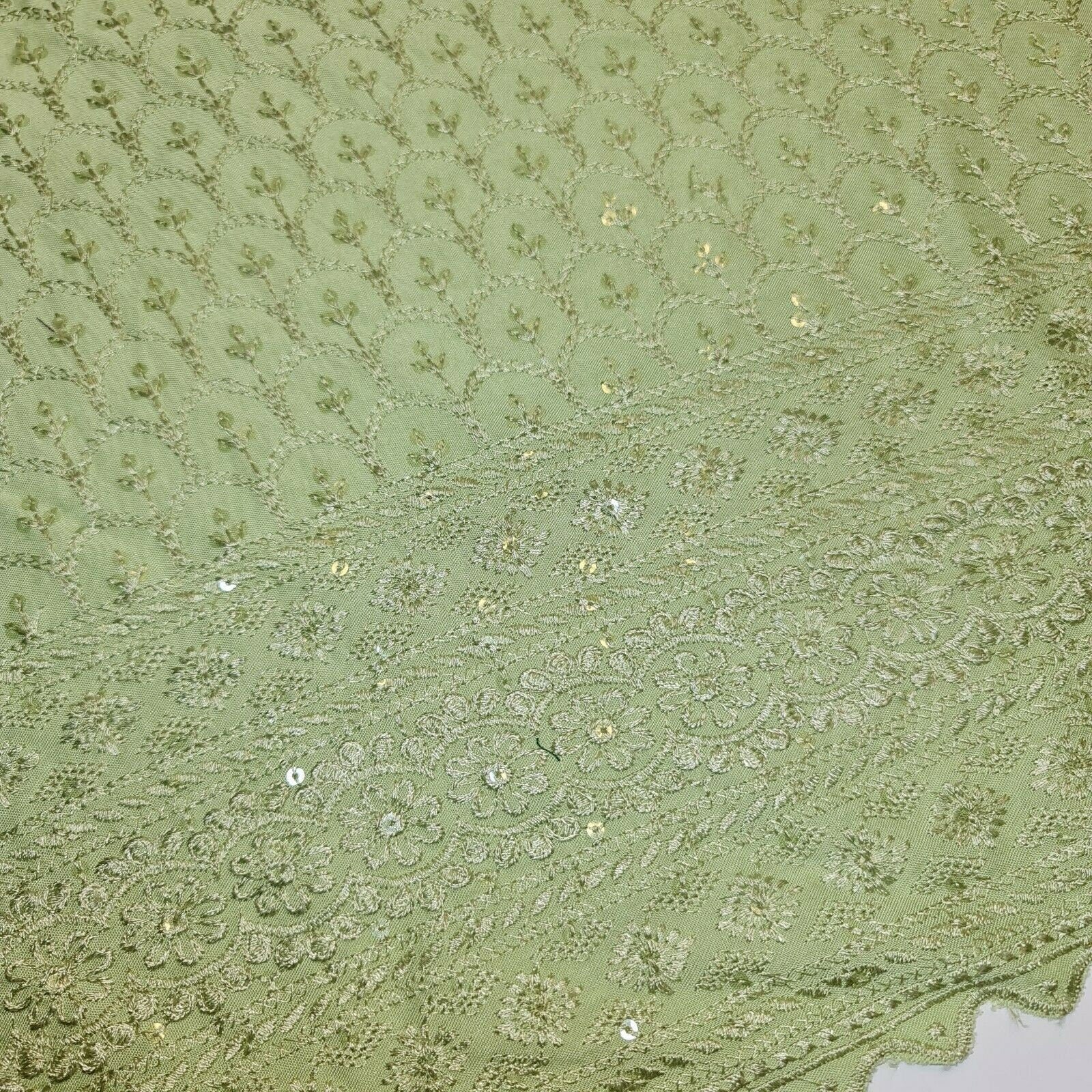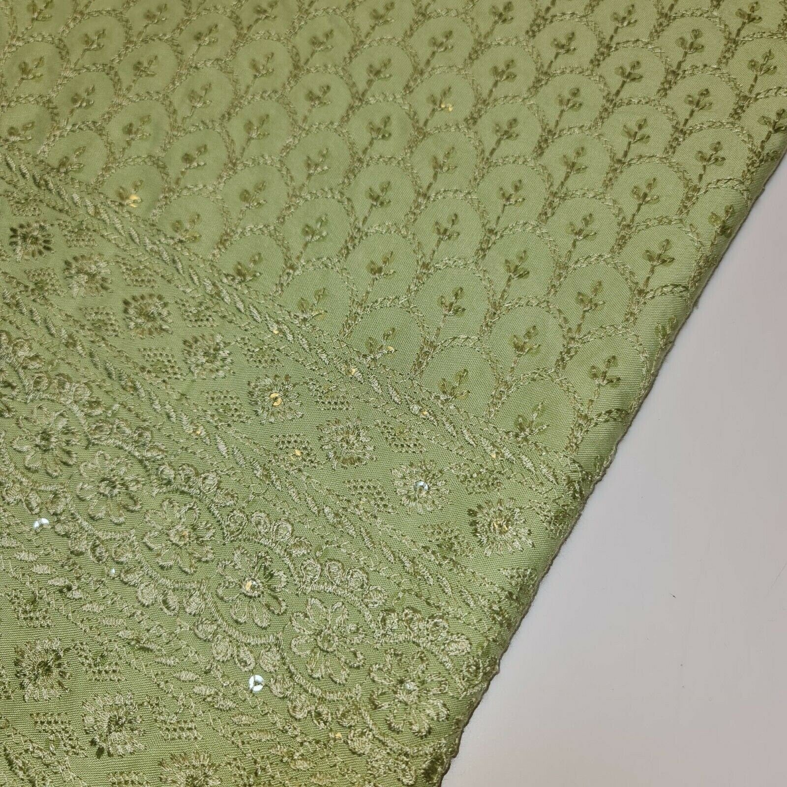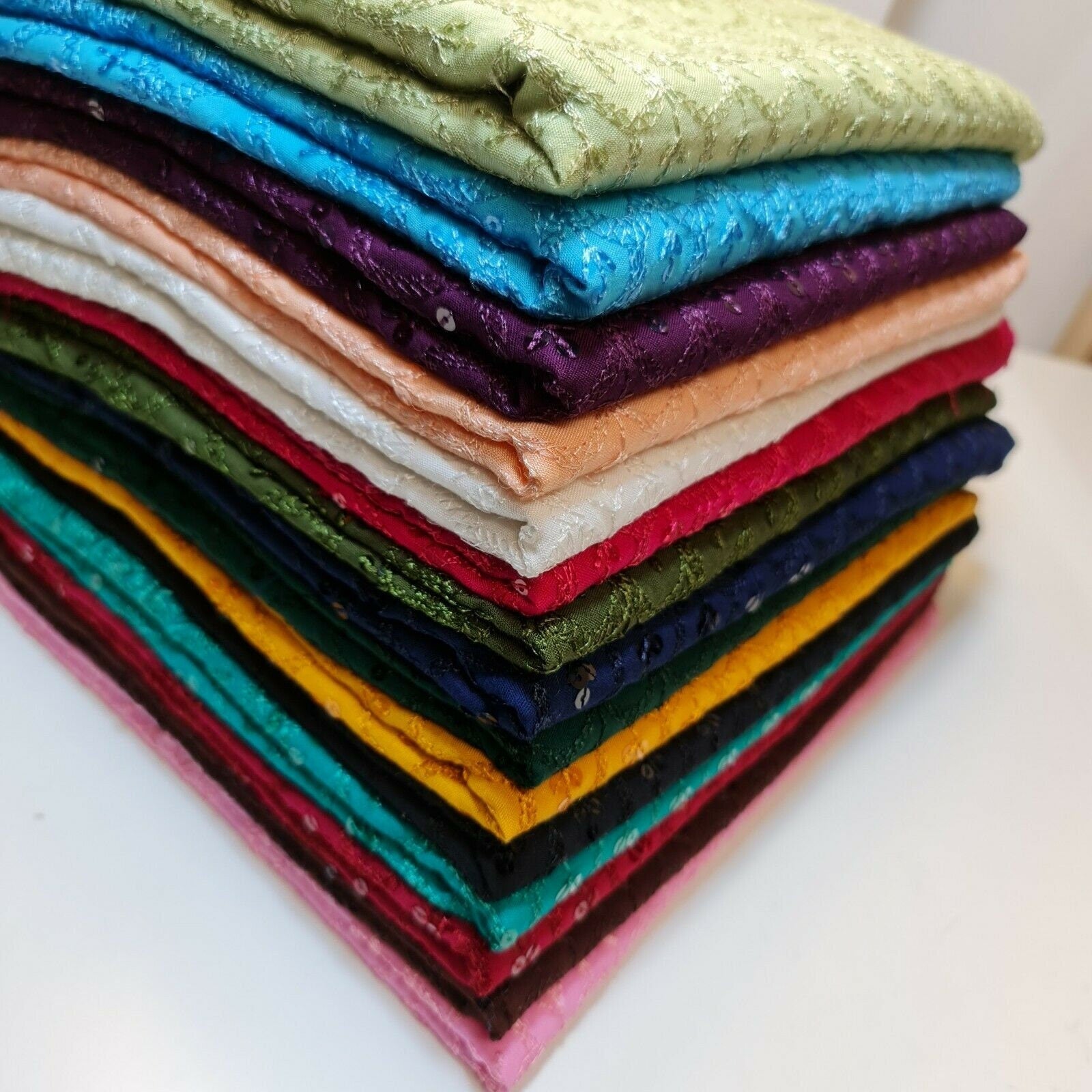 Perfect for creating stylish garments or decorative accents, this fabric combines classic embroidery with modern sequins for a chic and timeless look.