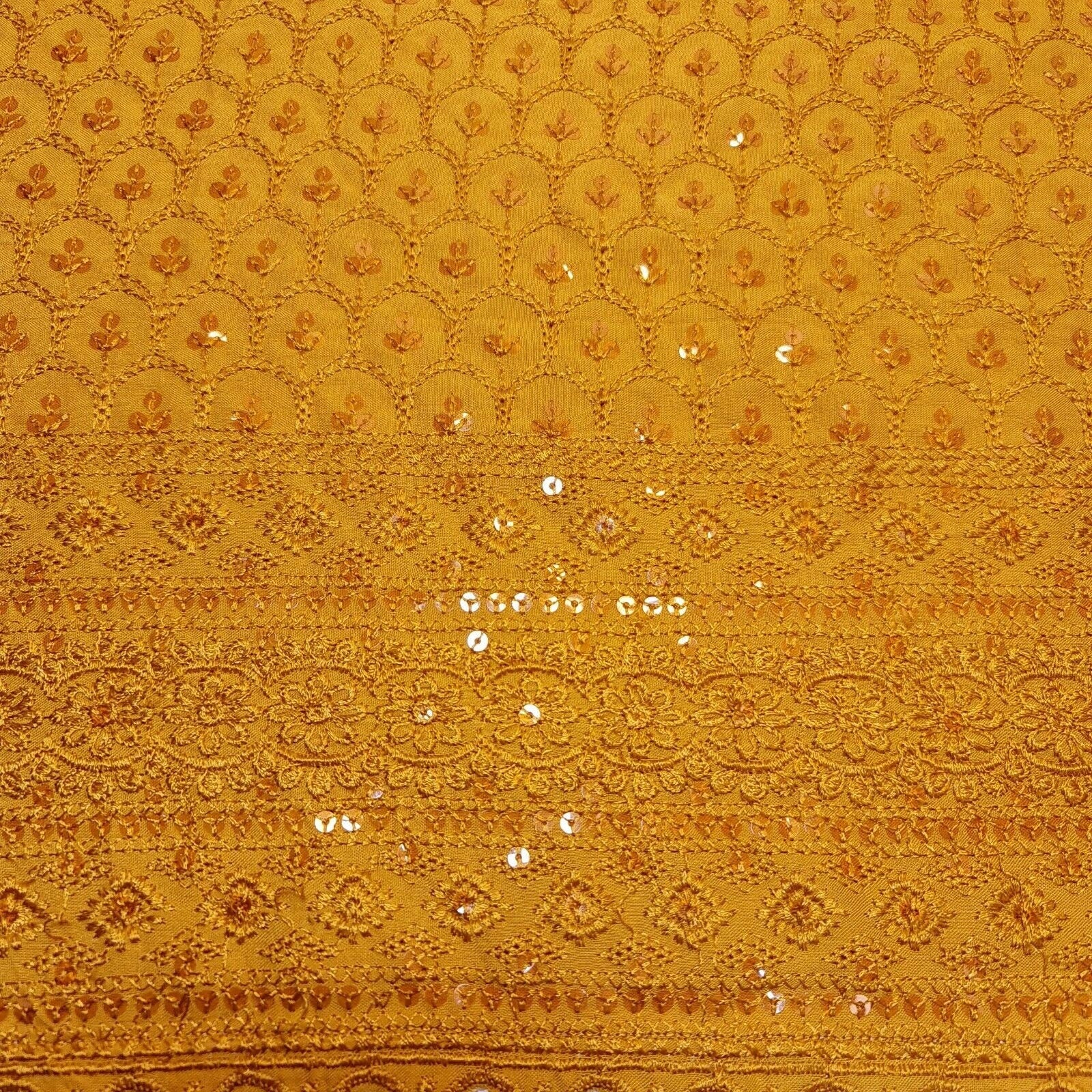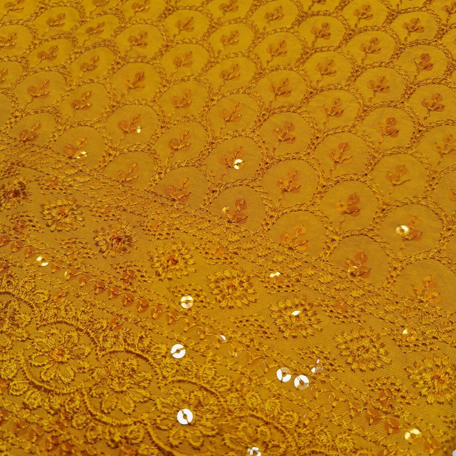 Mustard Broderie Anglaise Sequin Embroidery Soft Viscose Dress Craft Fabric – 44" By The Meter