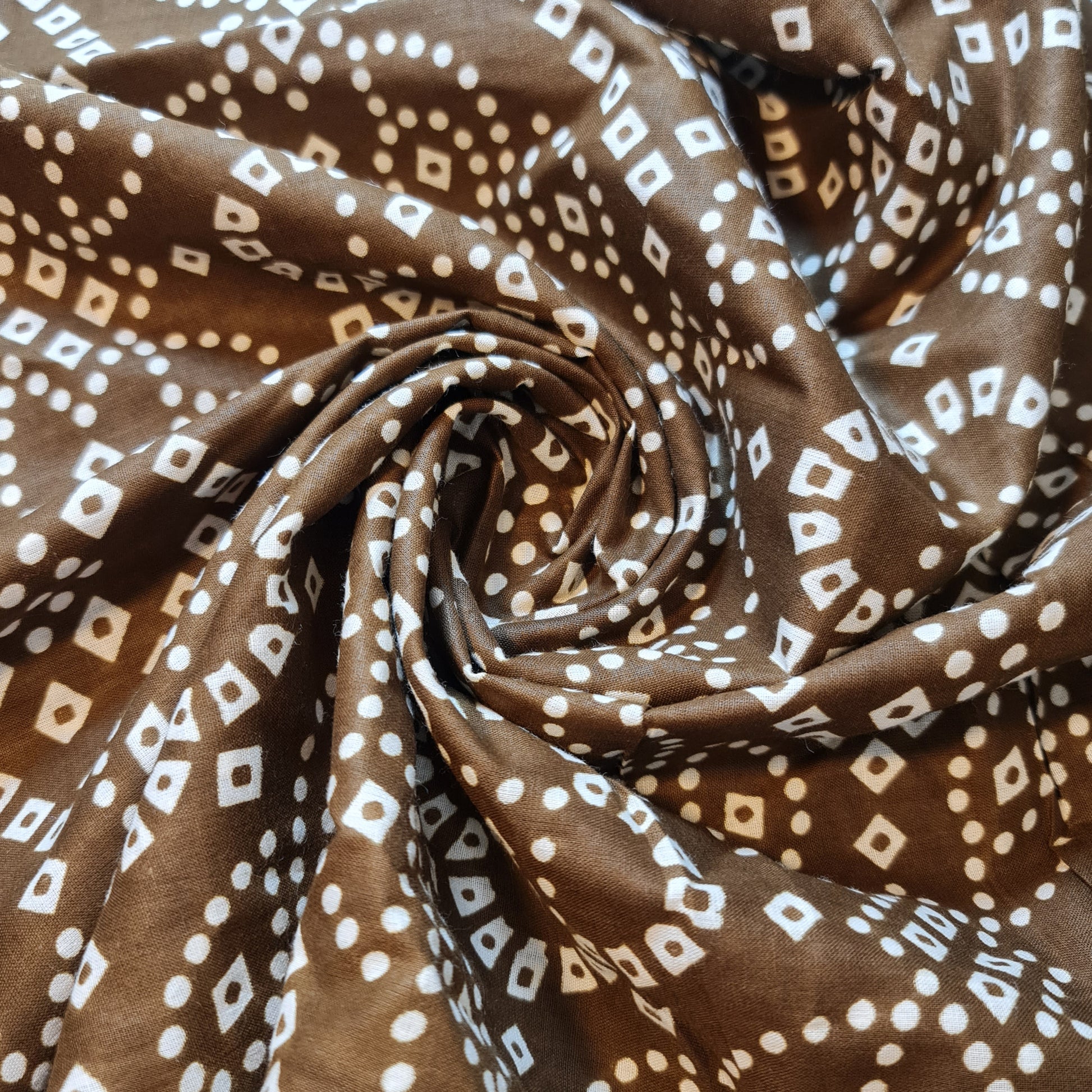 Brown Rajasthani 100% Cotton Lawn Fabric Craft Quilting Patchwork Material By The Meter 44"