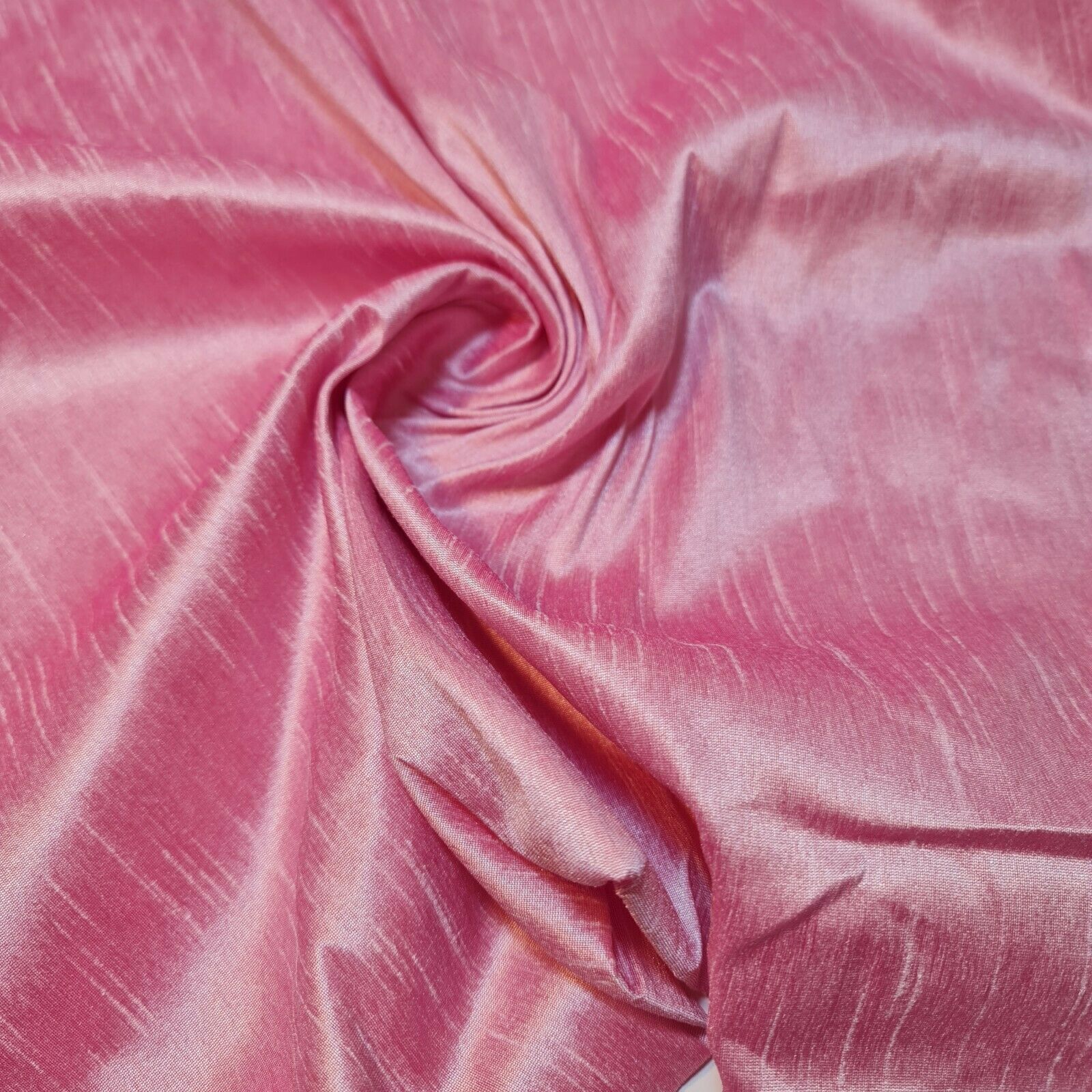 Candy Pink Plain Raw Silk Faux Dupion 100% Polyester Upholstery Fabric Bridal Material 44" By The Meter
