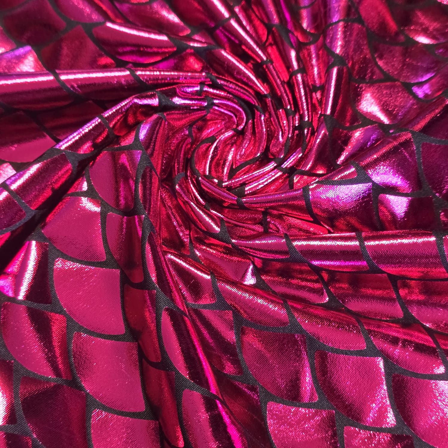 Cerise Metallic Mermaid Scale ITY Stretch Foil Reptile Snake Skin Dance Costume Fabric 58" By The Meter