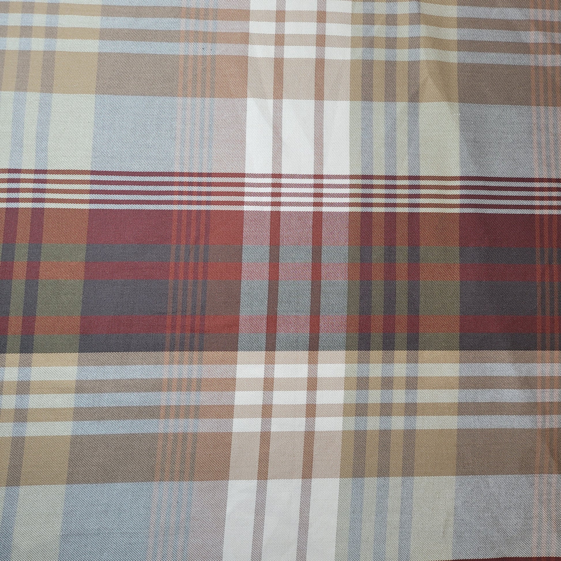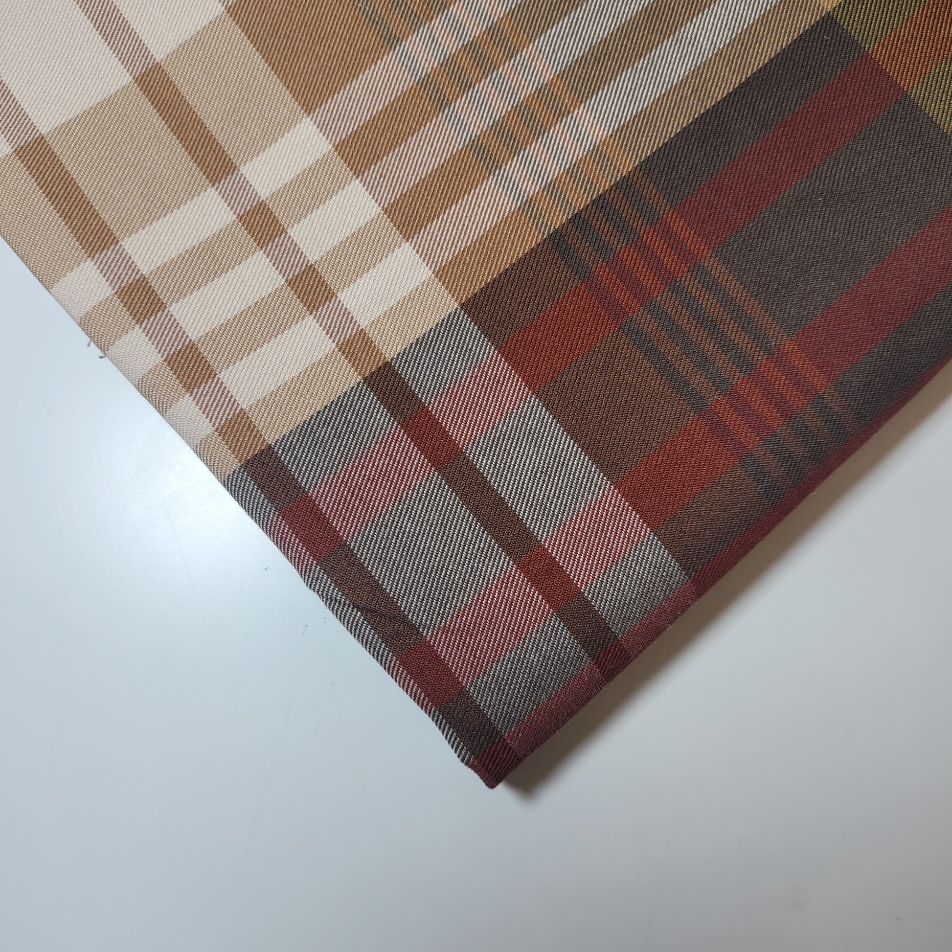 * Clearance * Geometric Stripes & Tartan Chenille Tapestry-Inspired Medium to Heavyweight Curtain & Upholstery Fabrics – 58" Wide", Sold by the Meter (Beige Maroon Tartan)