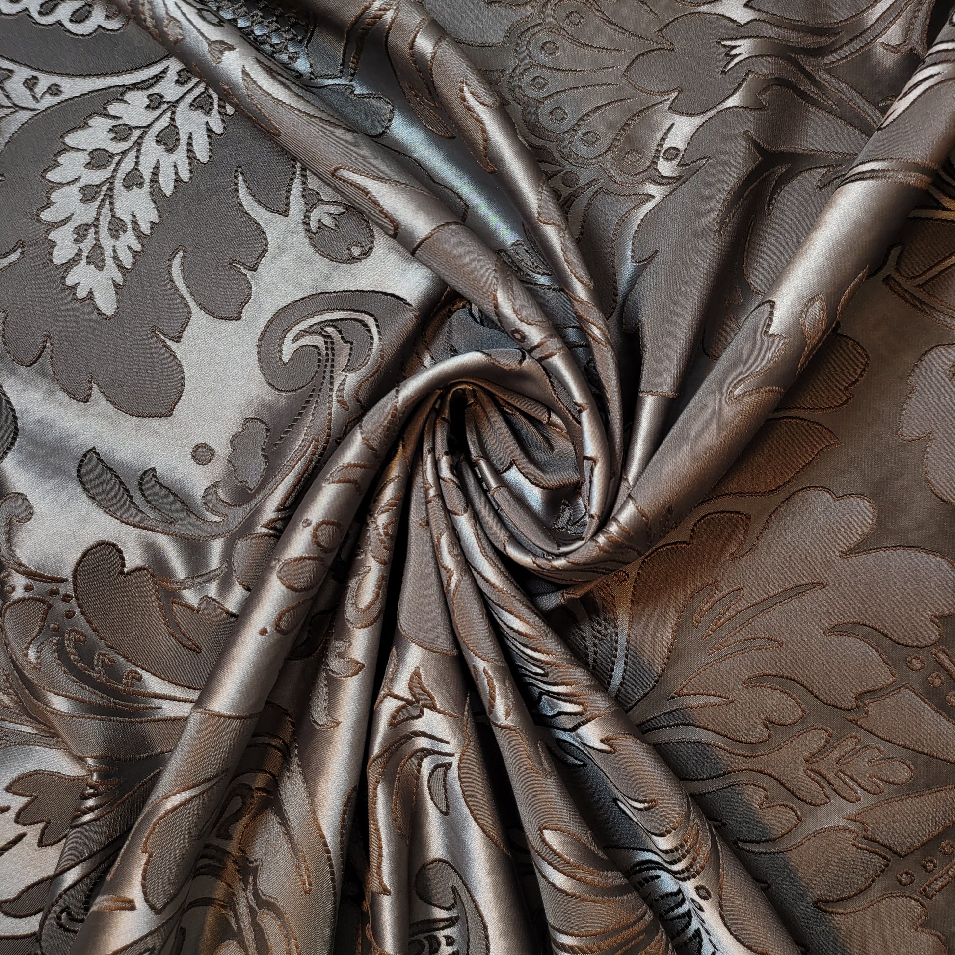 * Clearance * Geometric Stripes & Tartan Chenille Tapestry-Inspired Medium to Heavyweight Curtain & Upholstery Fabrics – 58" Wide", Sold by the Meter (Grey Damask)