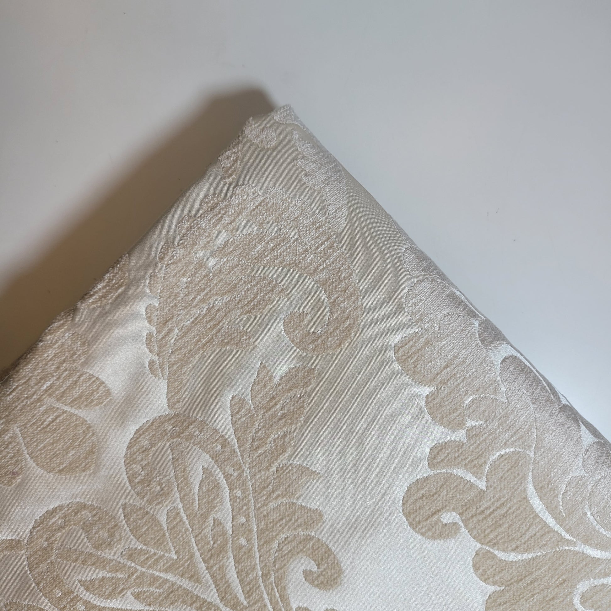 * Clearance * Geometric Stripes & Tartan Chenille Tapestry-Inspired Medium to Heavyweight Curtain & Upholstery Fabrics – 58" Wide", Sold by the Meter (Ivory Madagascar Chenille Velvet)