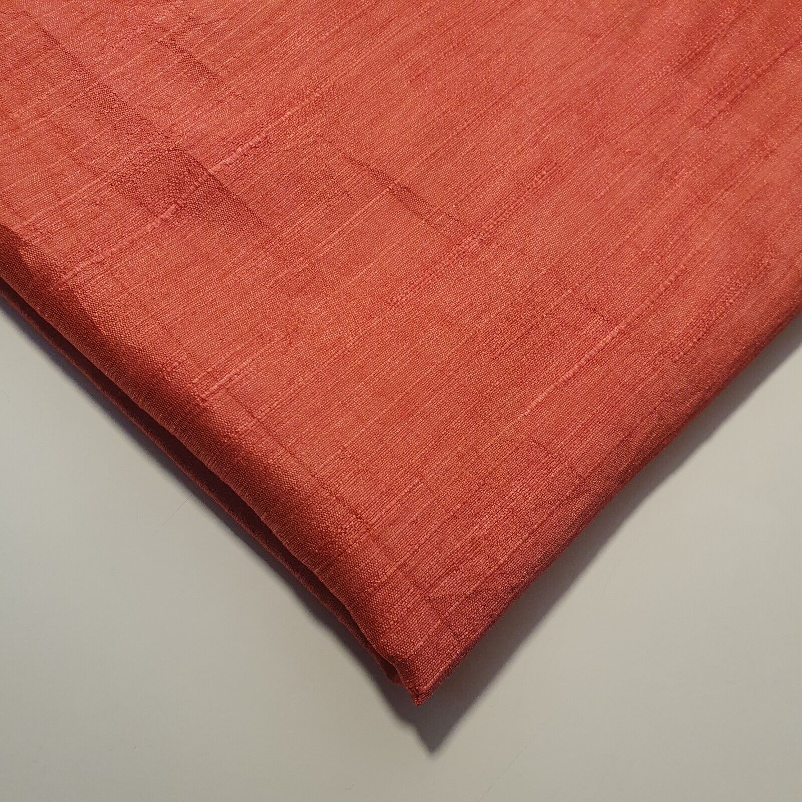 Coral Plain Raw Silk Faux Dupion 100% Polyester Upholstery Fabric Bridal Material 44" By The Meter
