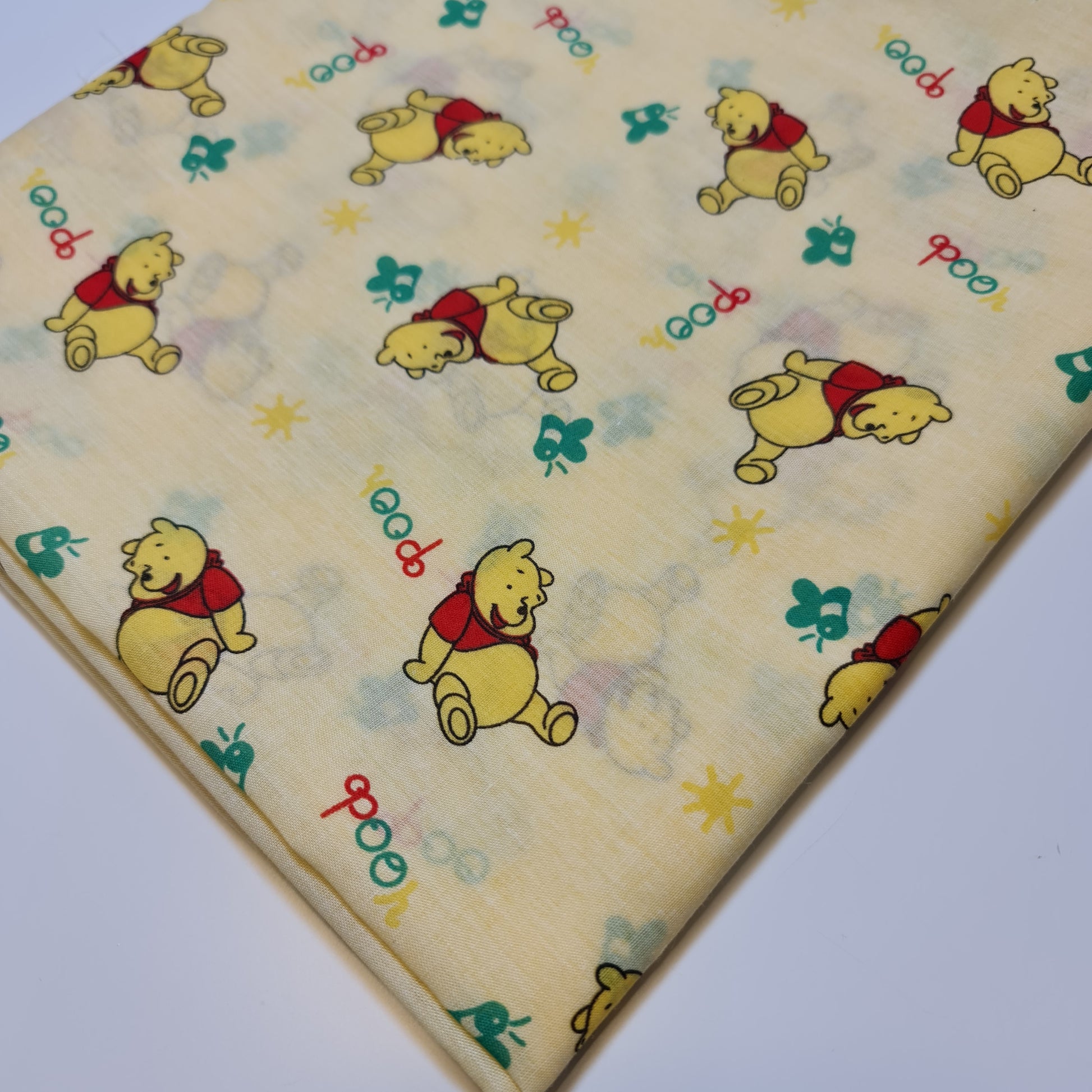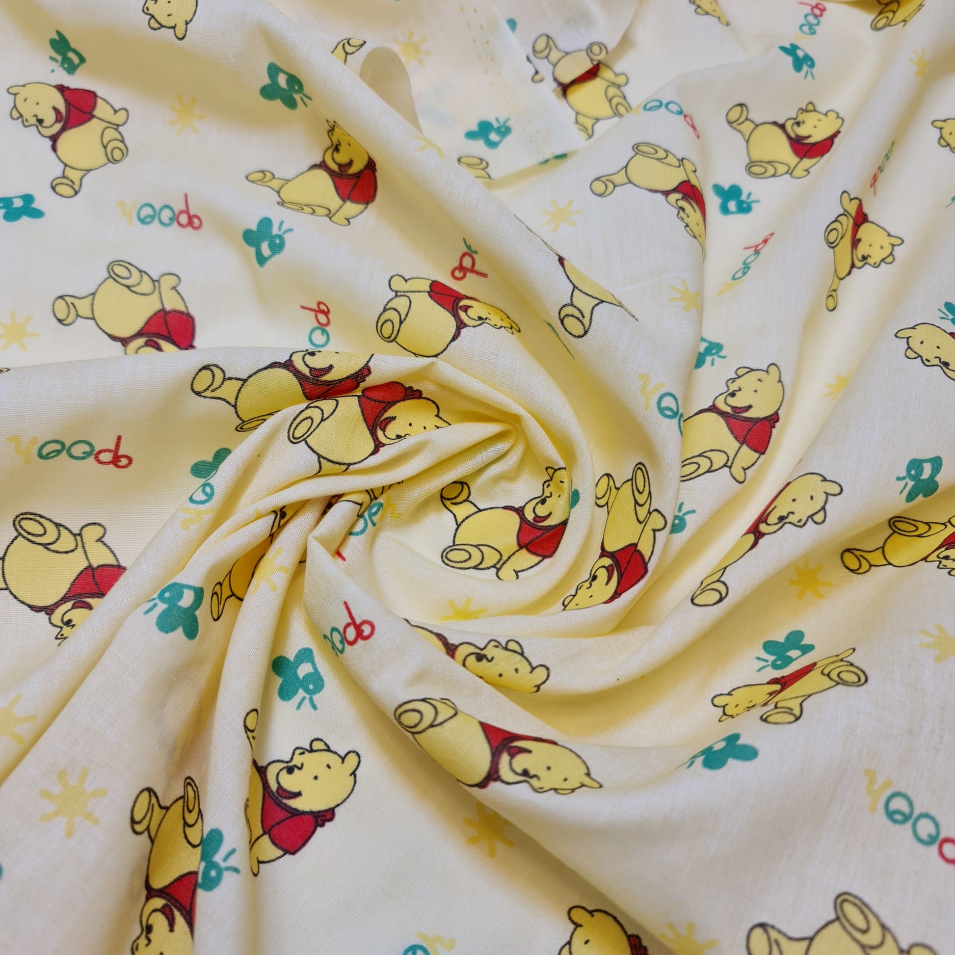 CREAM WINNIE THE POOH BEAR POLY COTTON FABRIC CRAFT DRESS QUILTING MATERIAL 44" BY METER