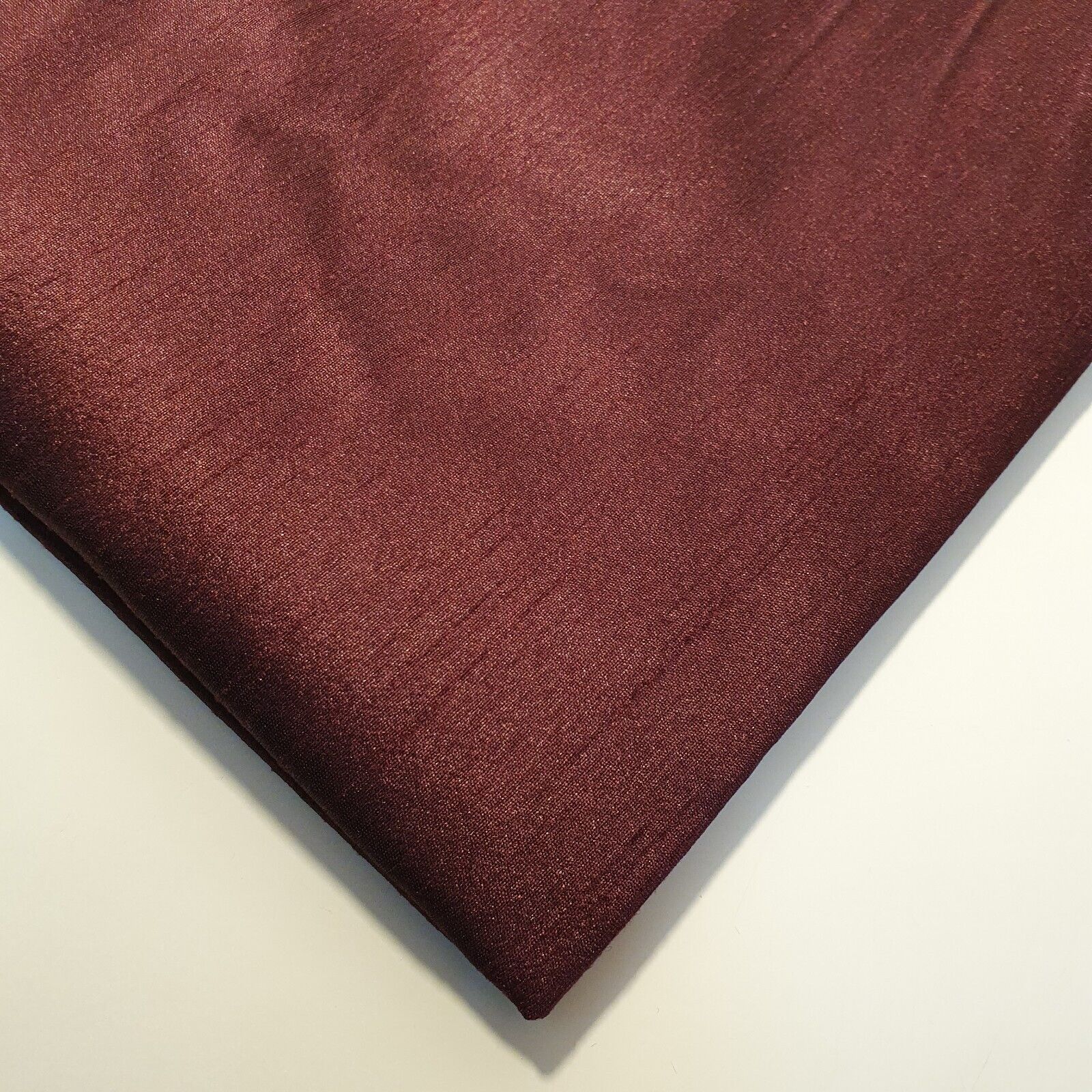 Dark Plum Plain Raw Silk Faux Dupion 100% Polyester Upholstery Fabric Bridal Material 44" By The Meter