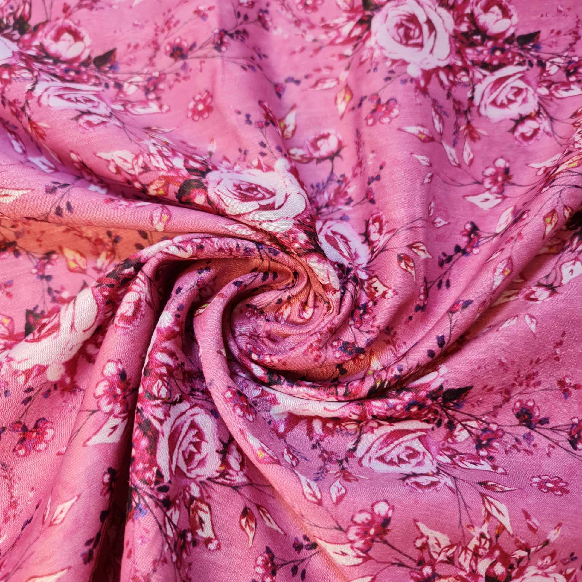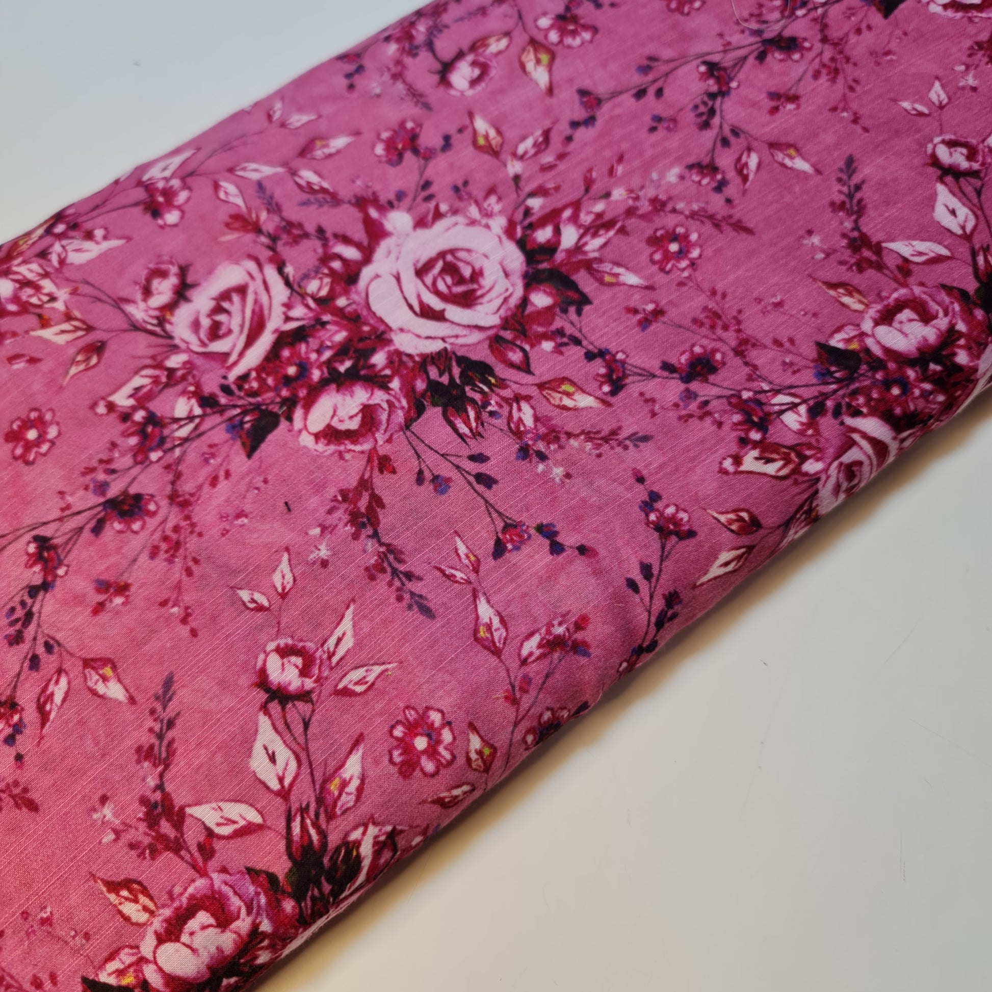 Fuchsia Bloom Floral Print Polycotton Muslin Fabric Dress Drape Craft Material 44" By Meter