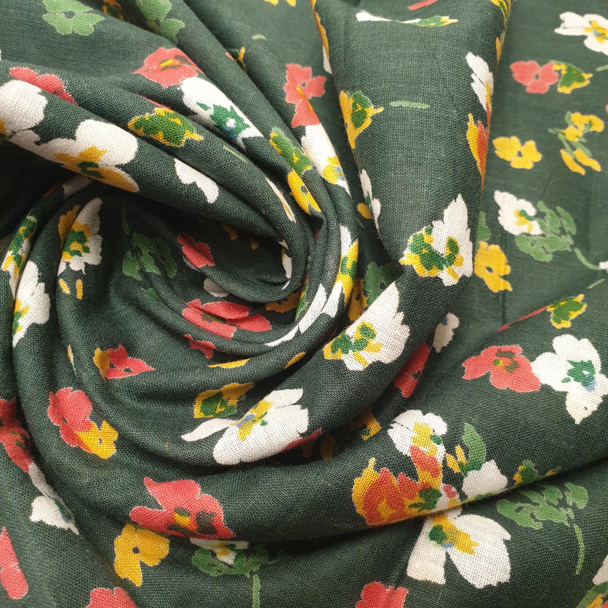 Green Floral 100% Cotton Lawn Fabric Craft Quilting Patchwork Material Meter 44"