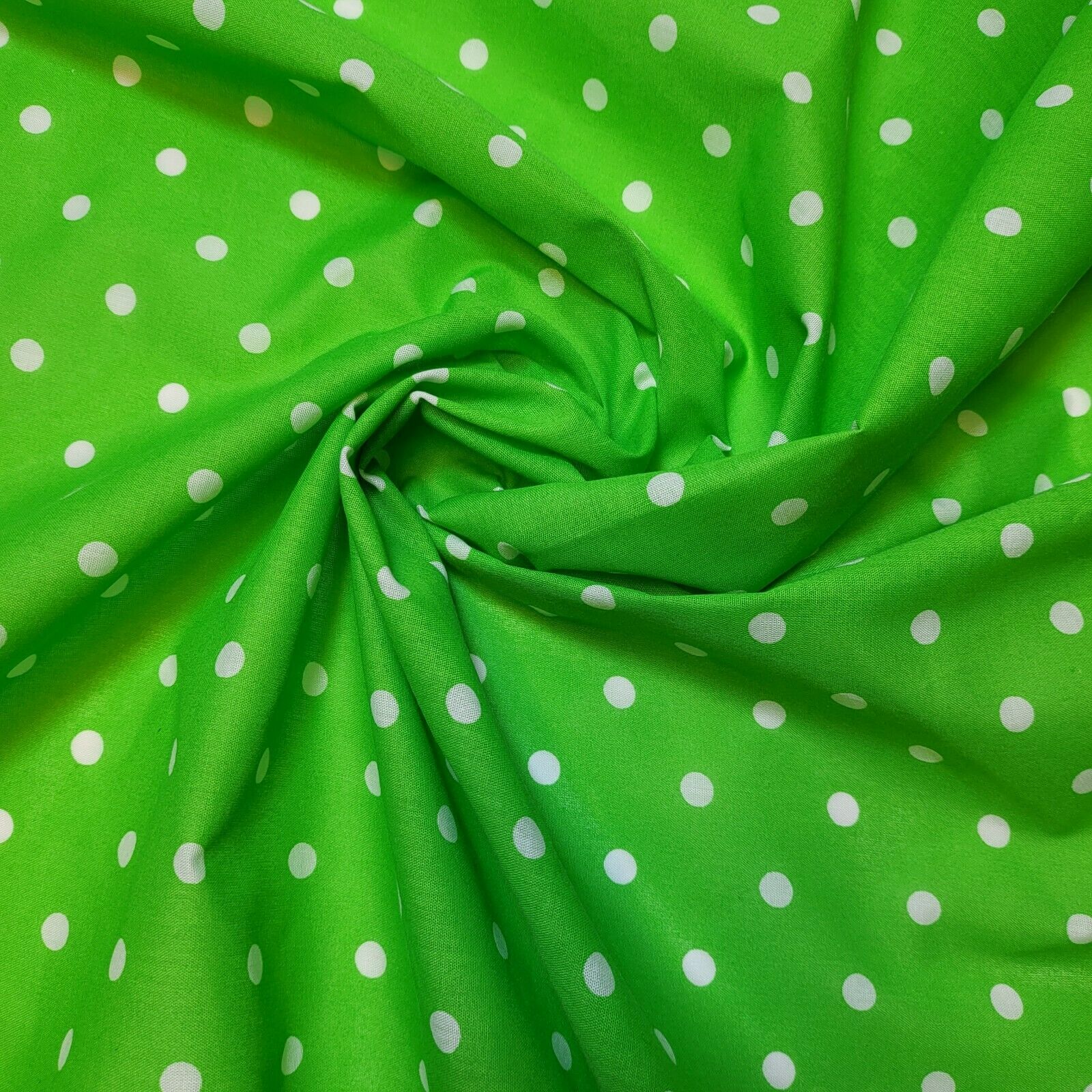 GREEN PEA PIN SPOTTY POLKA DOT POLYCOTTON FABRIC DRESS QUILTING MATERIAL 44"
