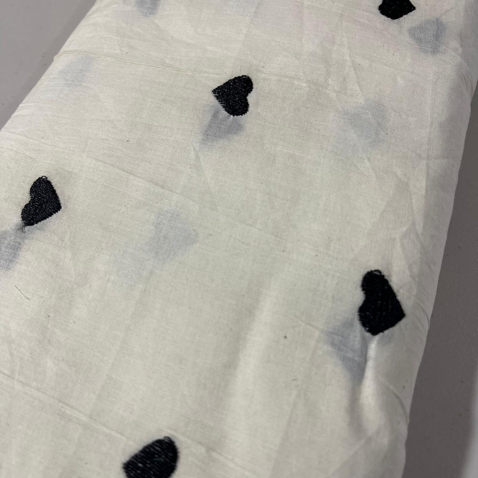 Hearts Embroidery Dyeable Cotton Fabric, 44 inches wide, sold by the meter. This charming cotton fabric features delicate heart-shaped embroidery and can be dyed to create personalized designs. Soft, breathable, and durable, it is perfect for dresses, costumes, crafts, quilting, home décor, and other creative sewing projects. Ideal for designers, artisans, and DIY enthusiasts seeking a high-quality, whimsical embroidered fabric with a romantic touch.