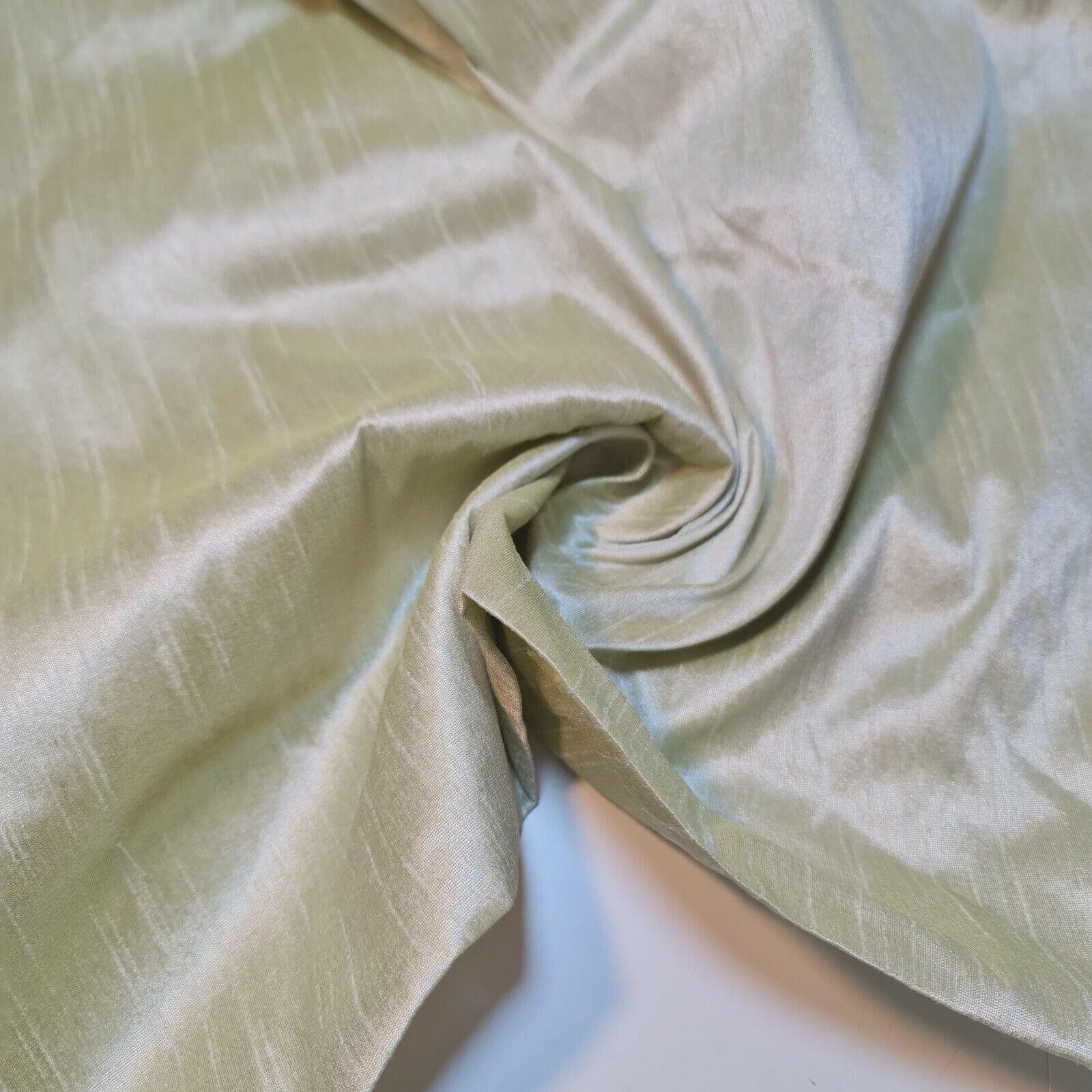 Light Olive Plain Raw Silk Faux Dupion 100% Polyester Upholstery Fabric Bridal Material 44" By Meter