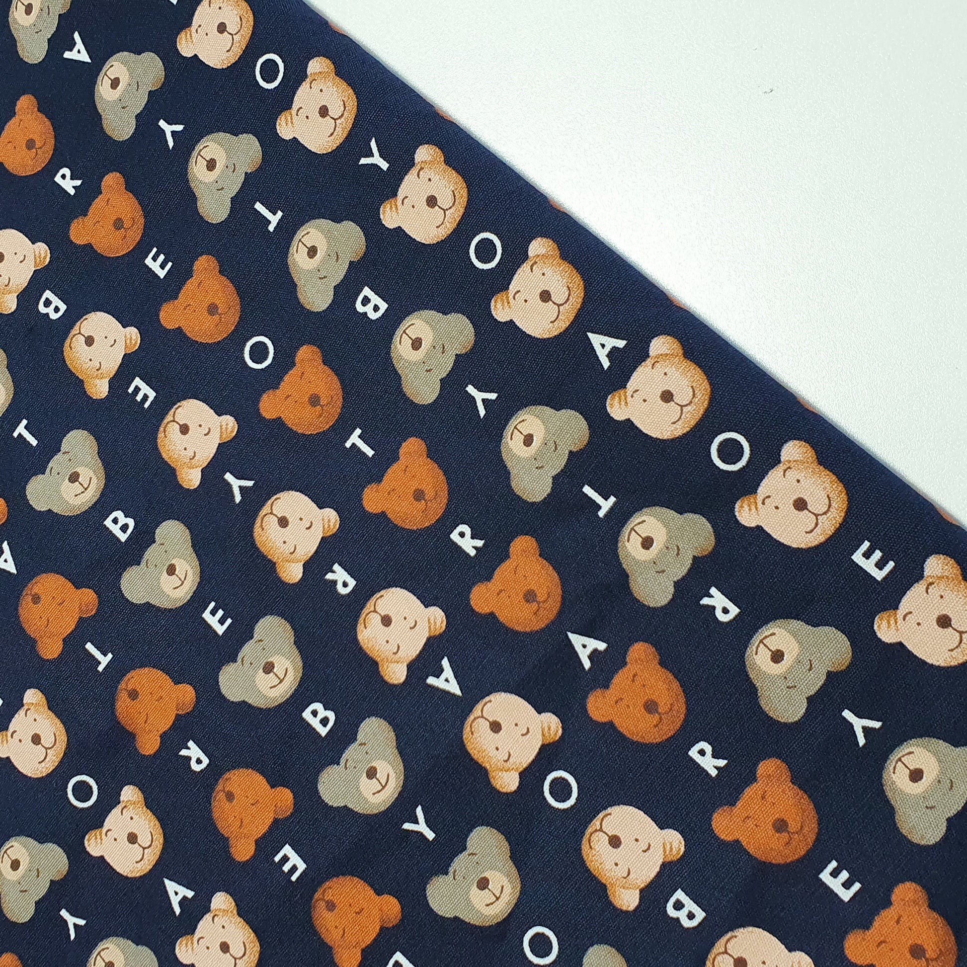Luxurious Elegant Vibrant Floral Polka 100% Cotton Canvas Fabric - 58” Wide, Perfect for Children’s Projects & Crafts (Navy Teddy Bear)