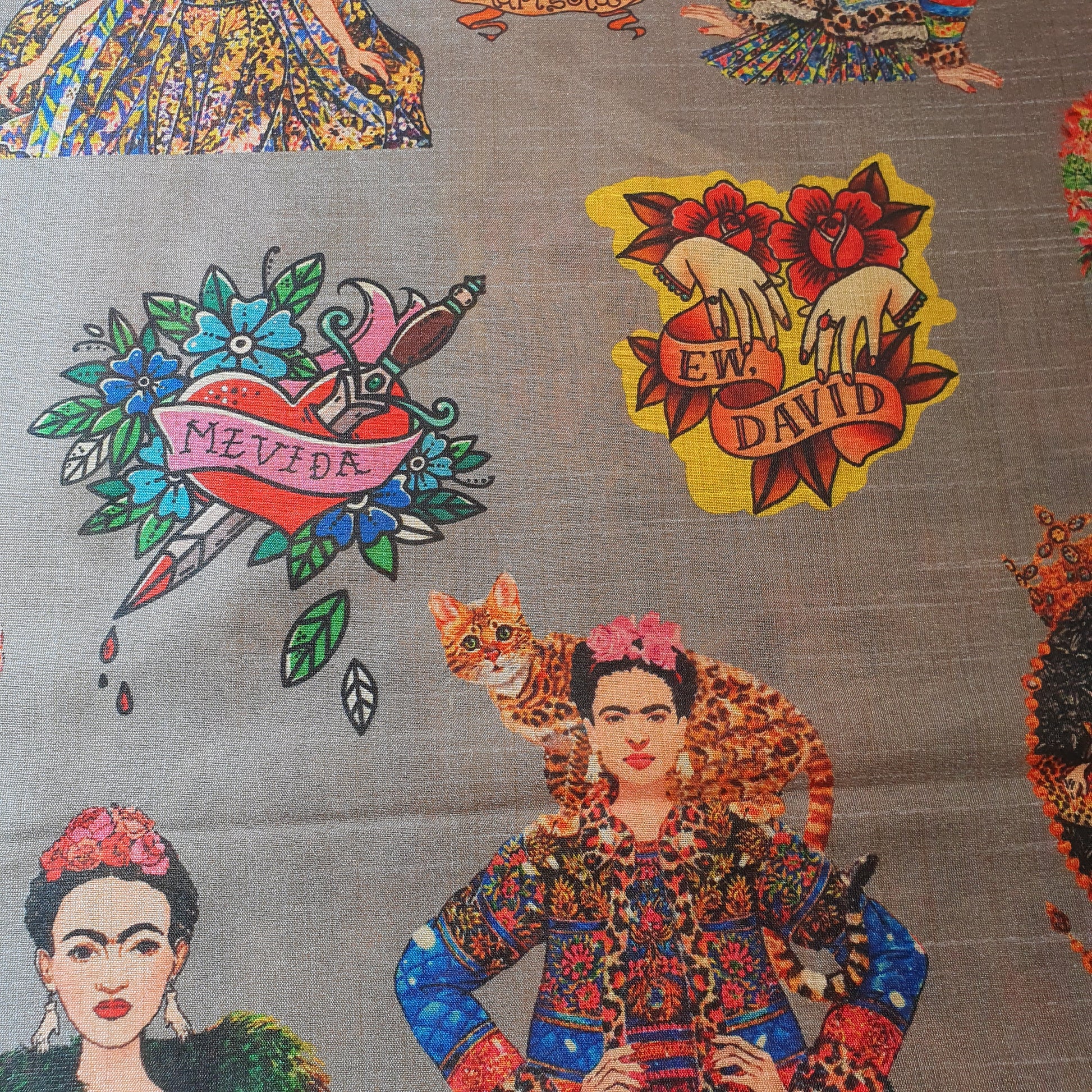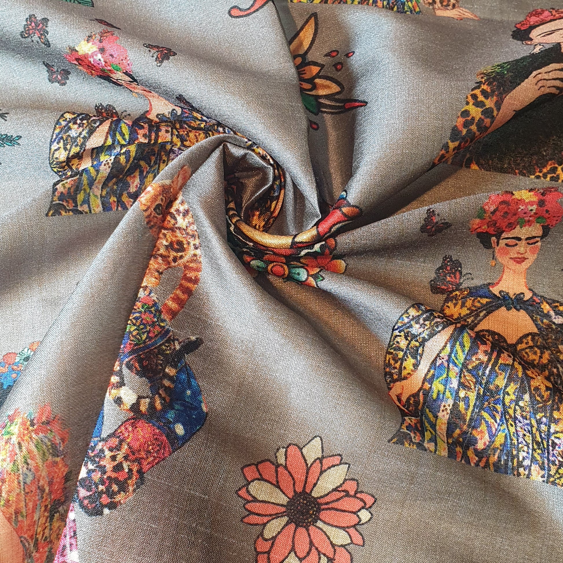 Marigold Frida Kahlo Digital Print Faux Raw Silk Fabric Dress Craft Quilting Material 44" By The Meter