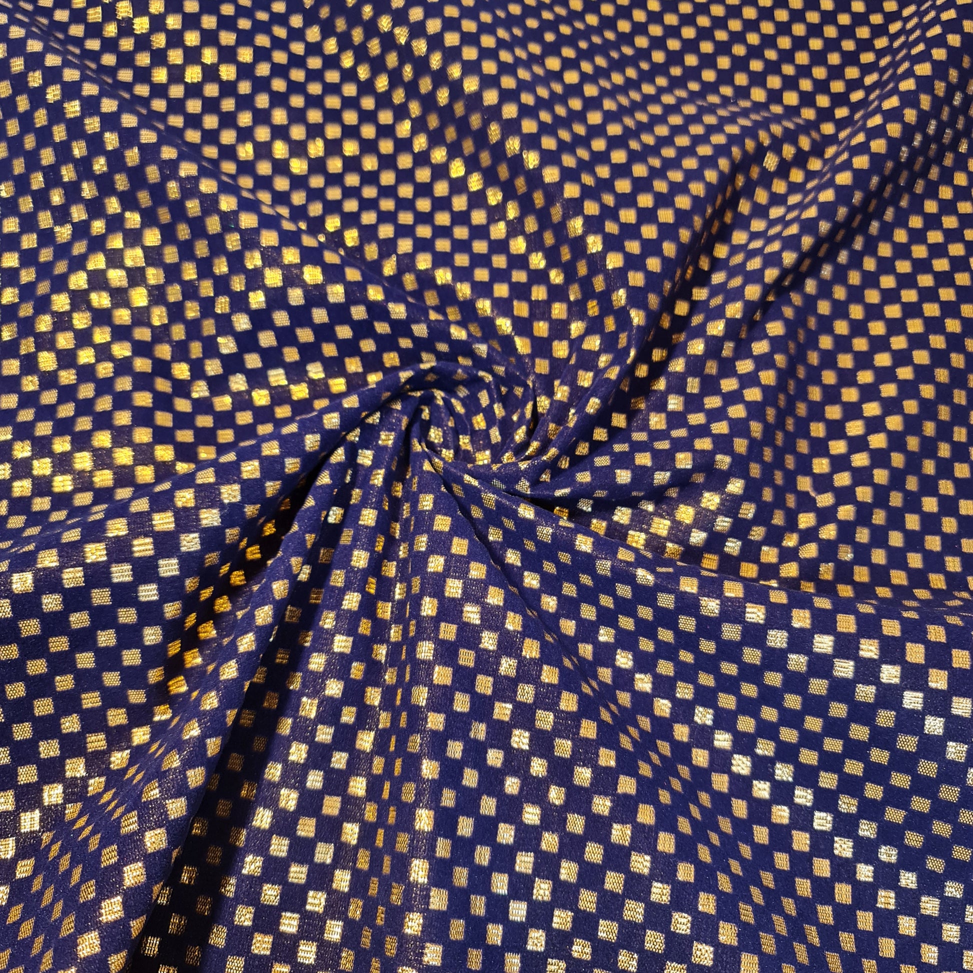 Navy Blue Gold Glitter Foil Lame Material Emboss Velvet Flock Check Plaid Décor Craft Dress Fabric 44" By Meter