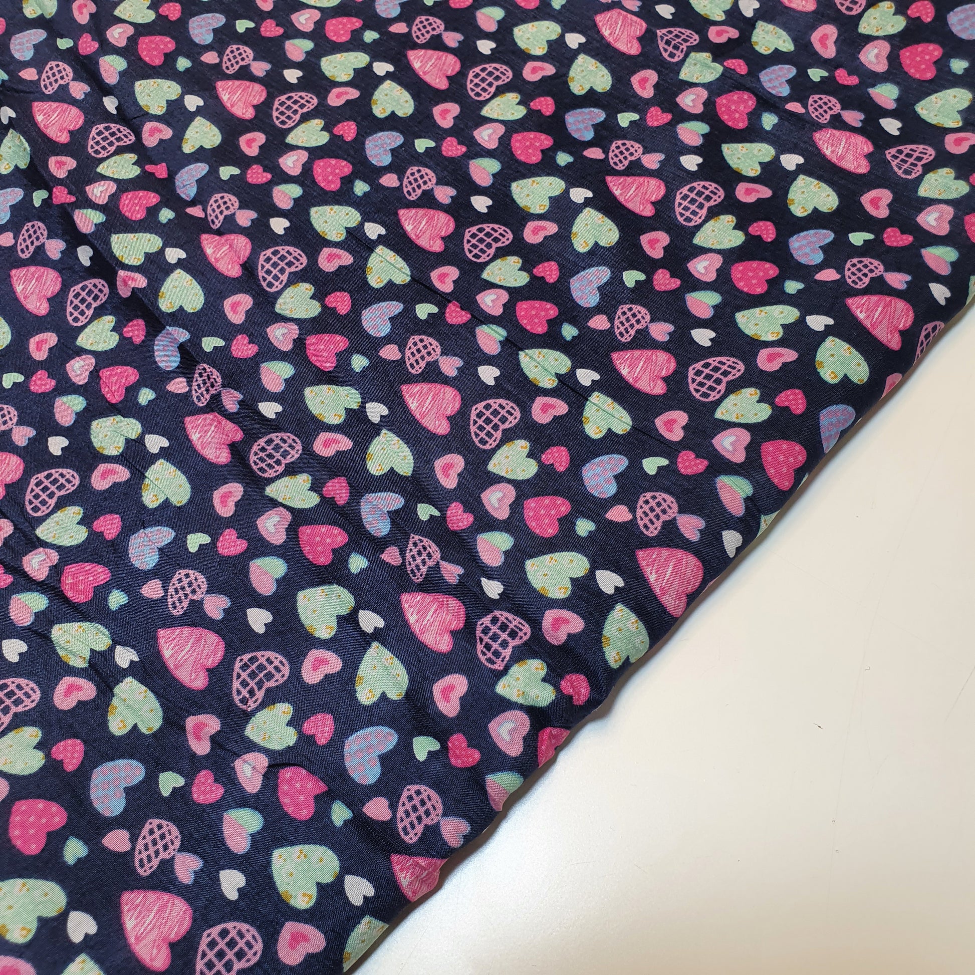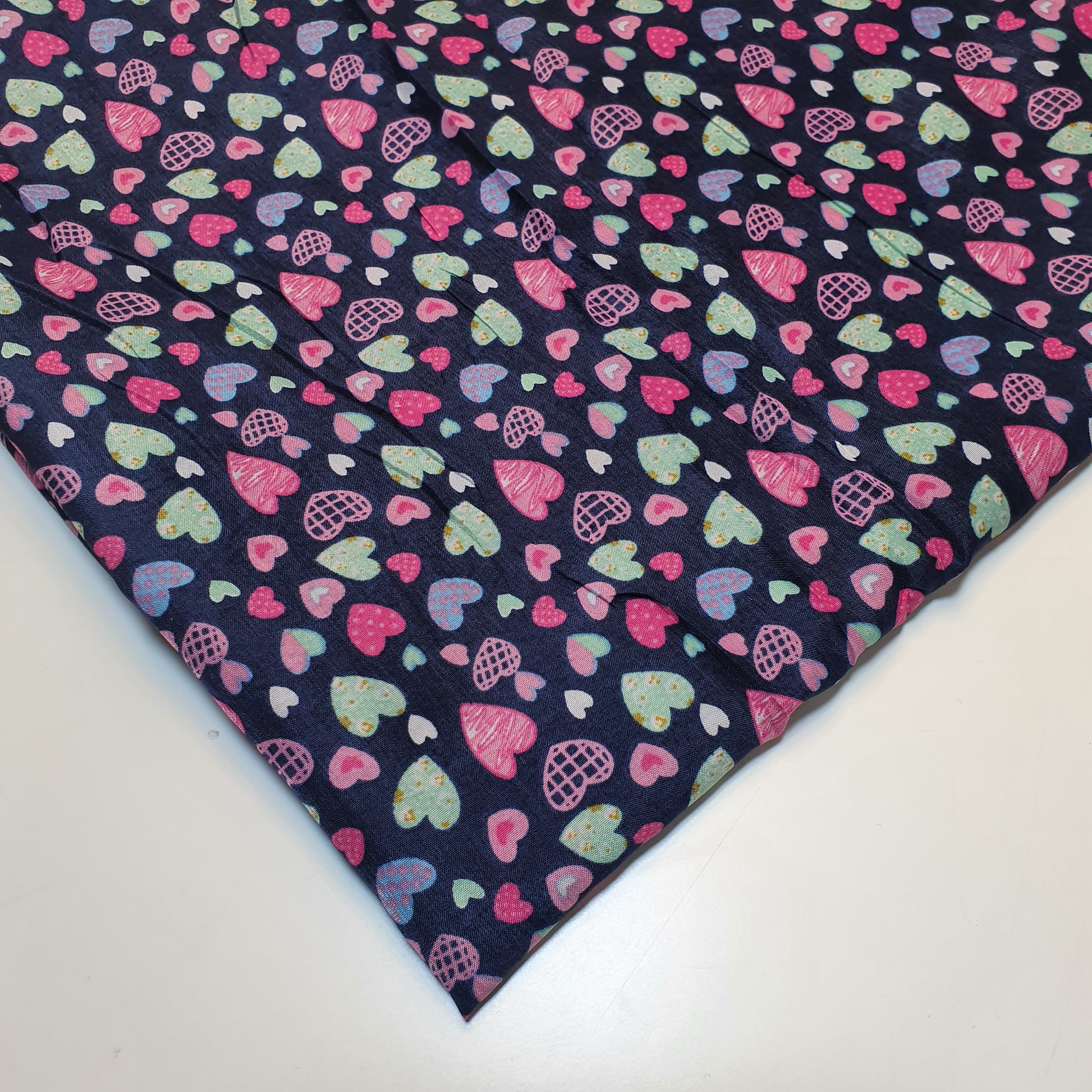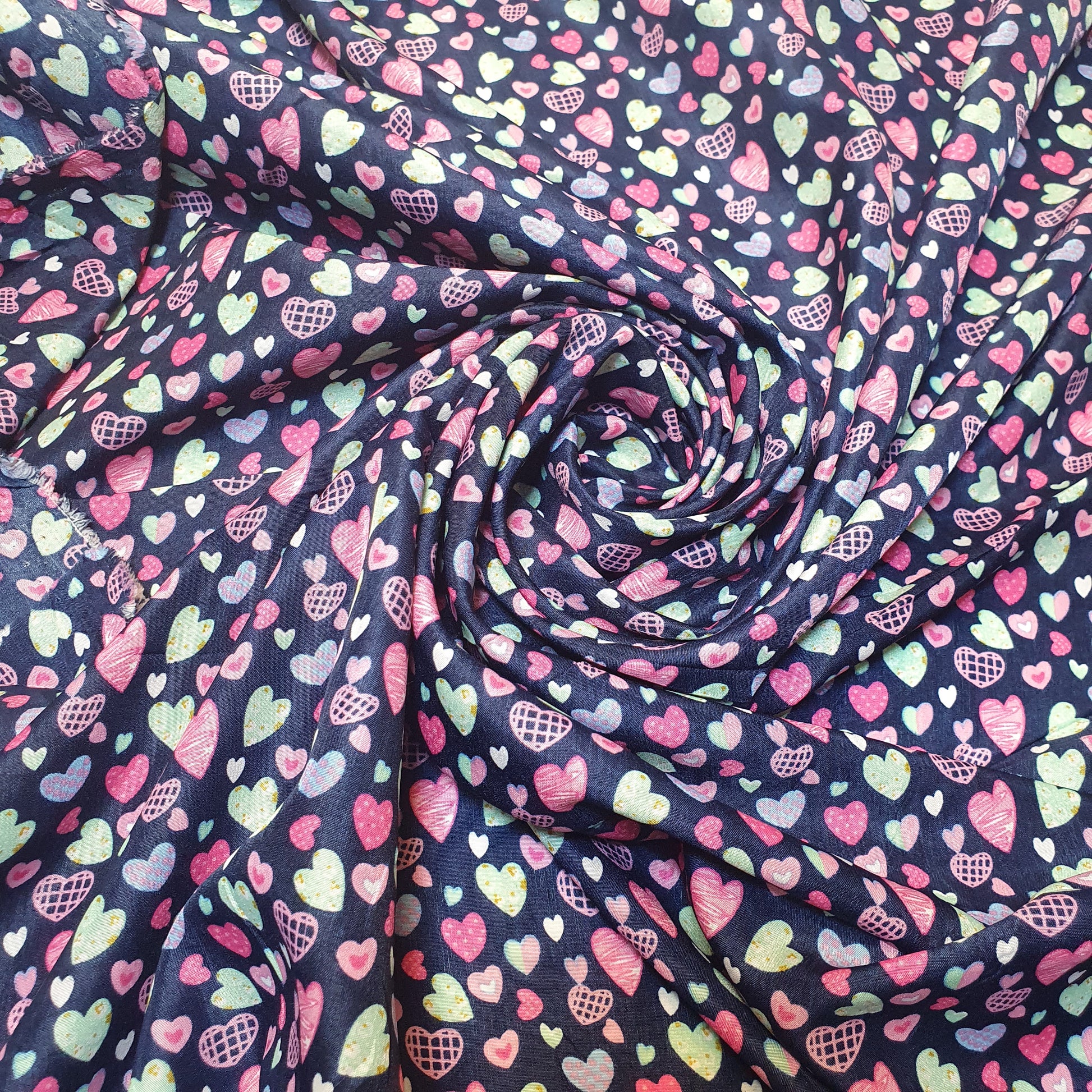 Navy Multi Heart Crepe Printed Fabric Sewing Craft Spot Quilting Dress Material 58" By the Meter
