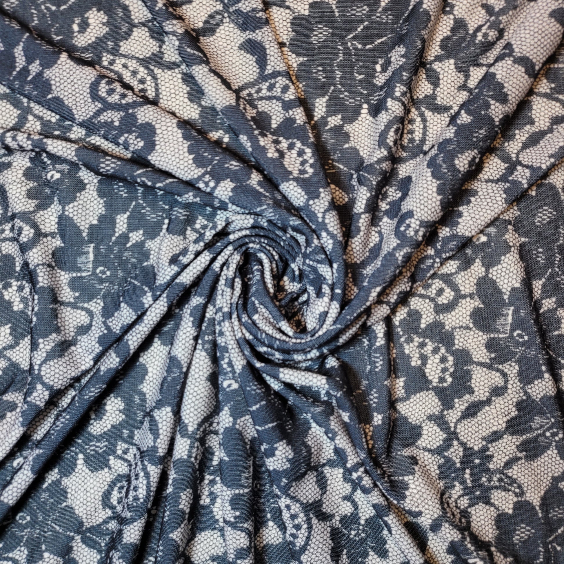 Grey Floral Lace Jersey Dress Craft Costume Material 58" By The Meter
