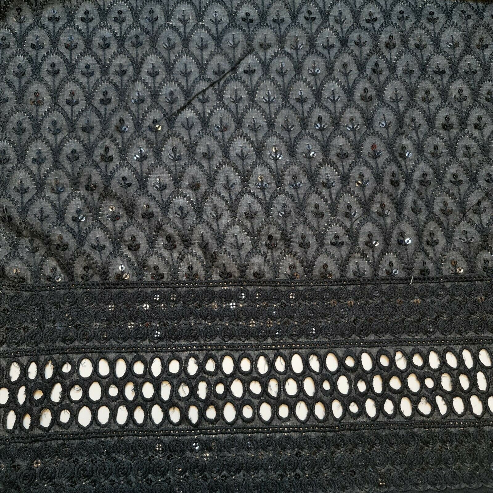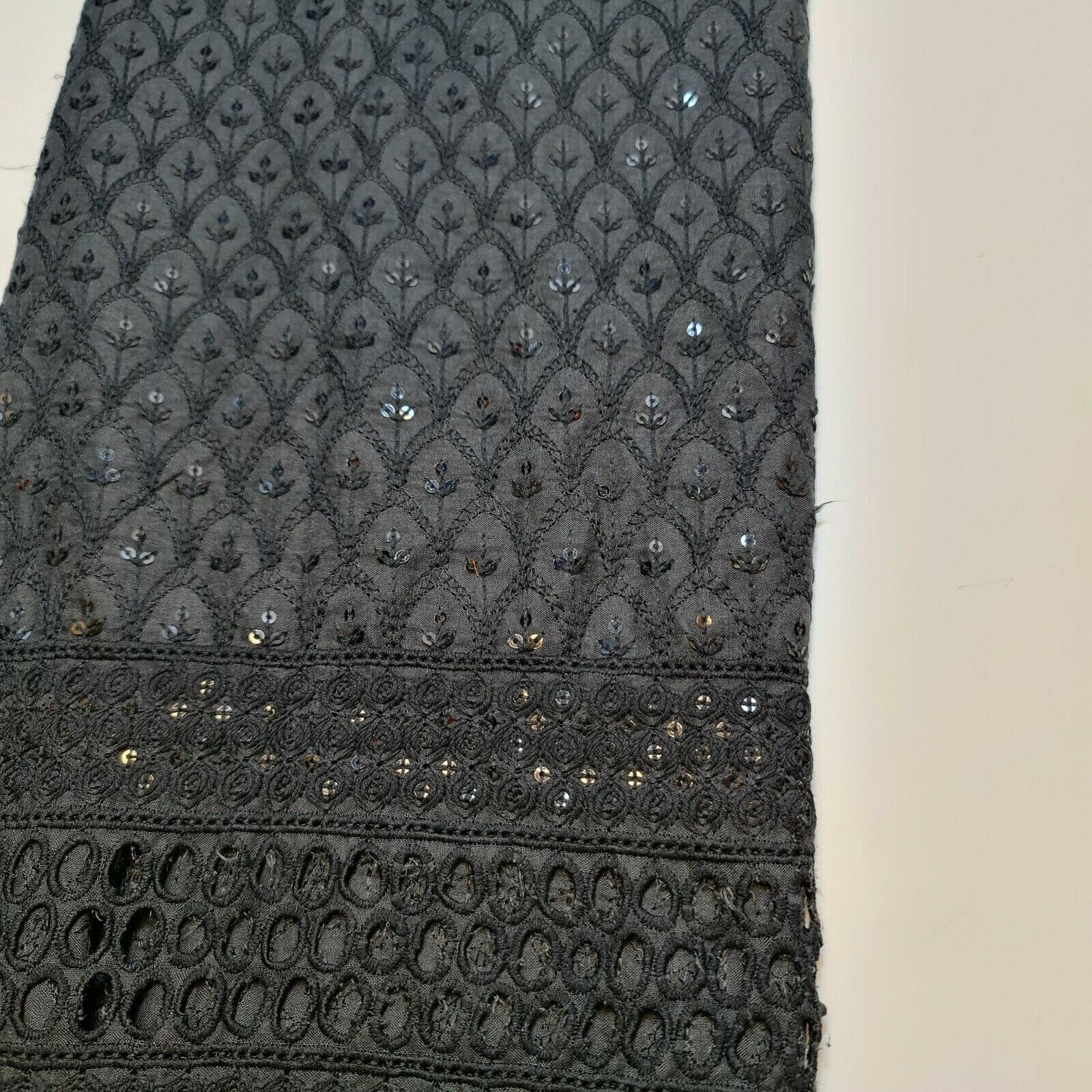 New Cotton Lawn Soft Broderie Anglaise Embroidery Border Dress Craft Fabric 50"J (Black)