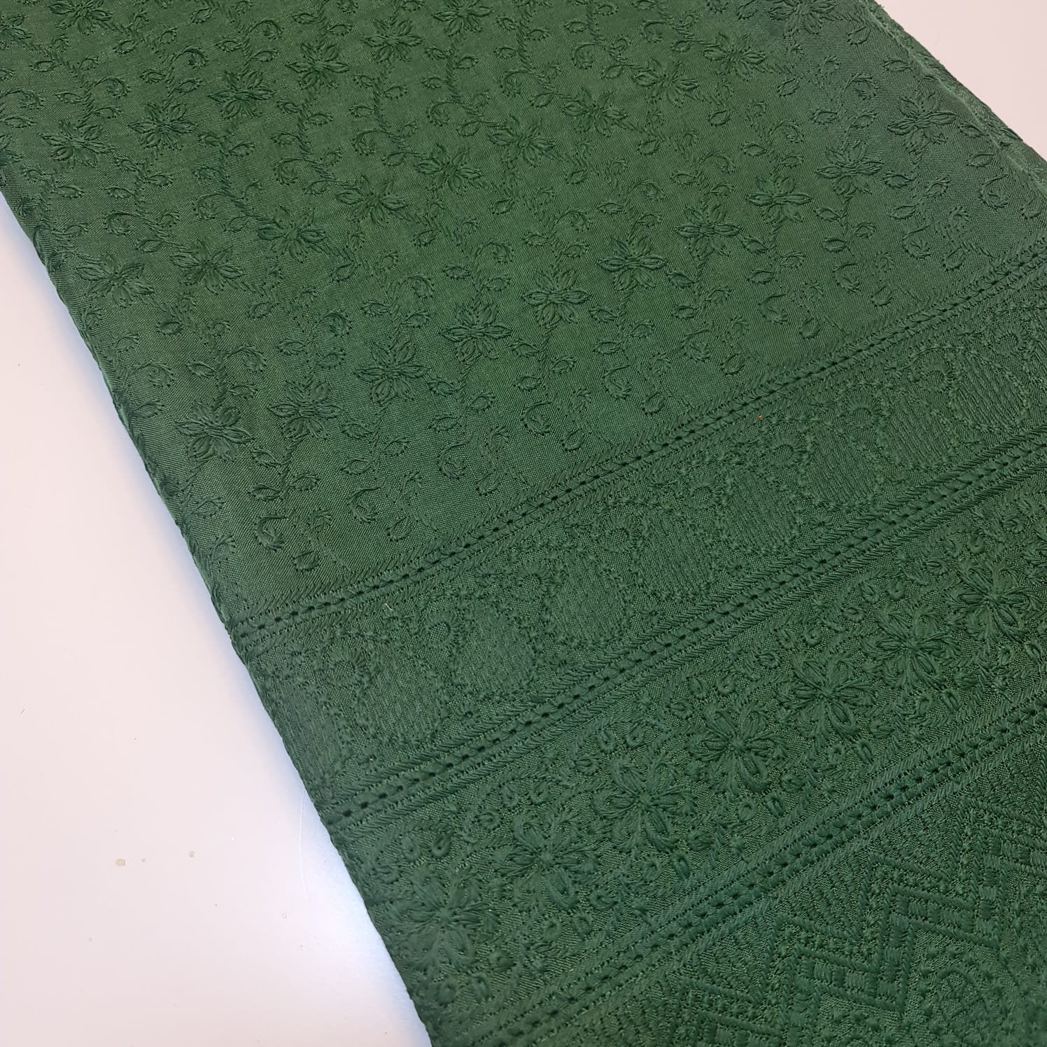 NEW SPRING 100% Cotton Lawn Broderie Anglaise Embroidery Dress Craft Fabric 44" (Bottle Green)