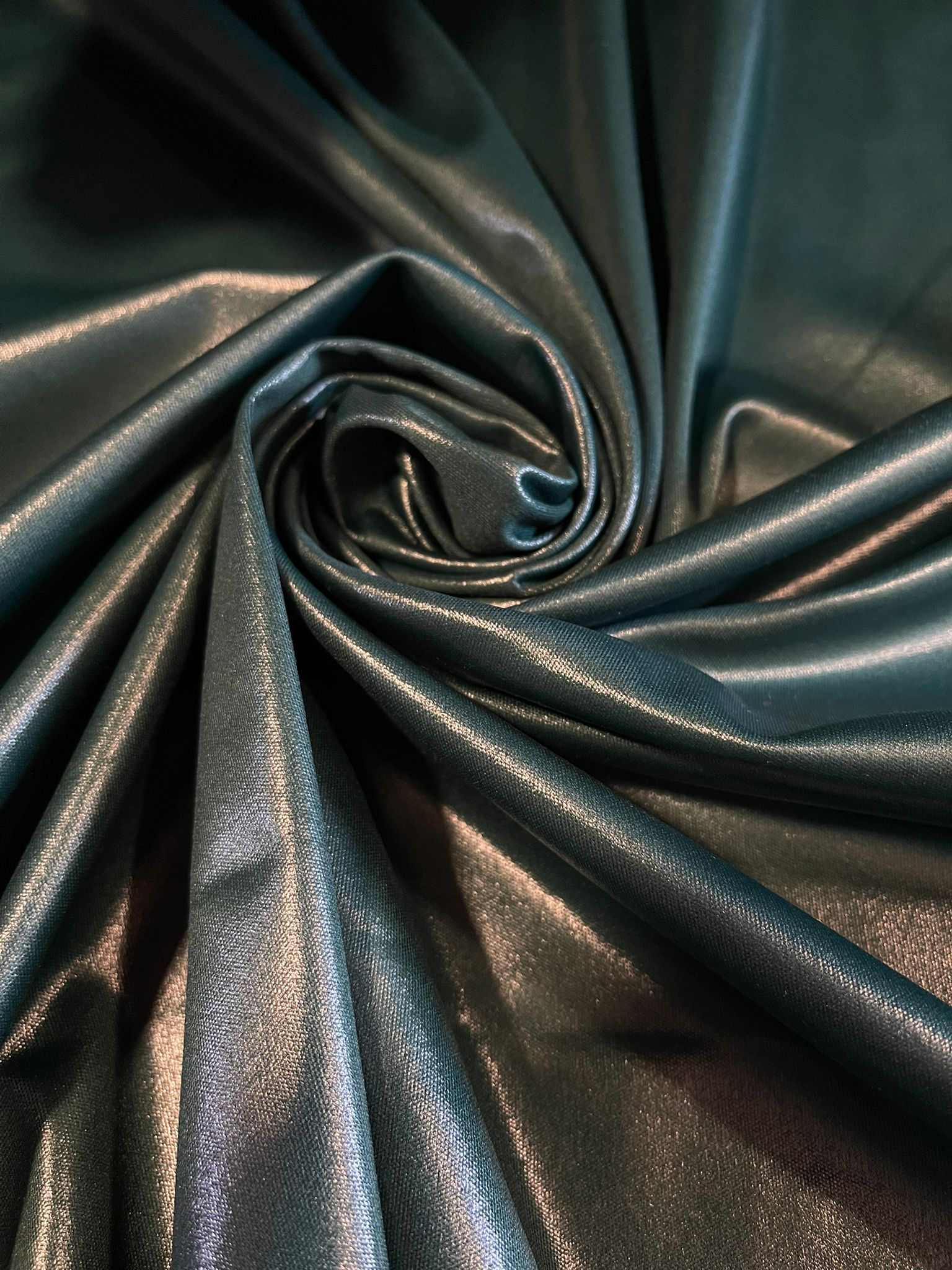 Elevate your creative projects with this luxurious bottle green PVC spandex fabric, designed to deliver the striking look of glossy leather with the flexibility of stretch material. Perfect for fashion, cosplay, performance wear, and craft projects, this fabric combines style, comfort, and durability.