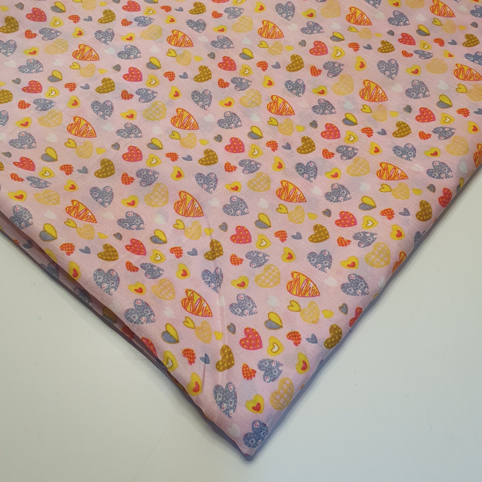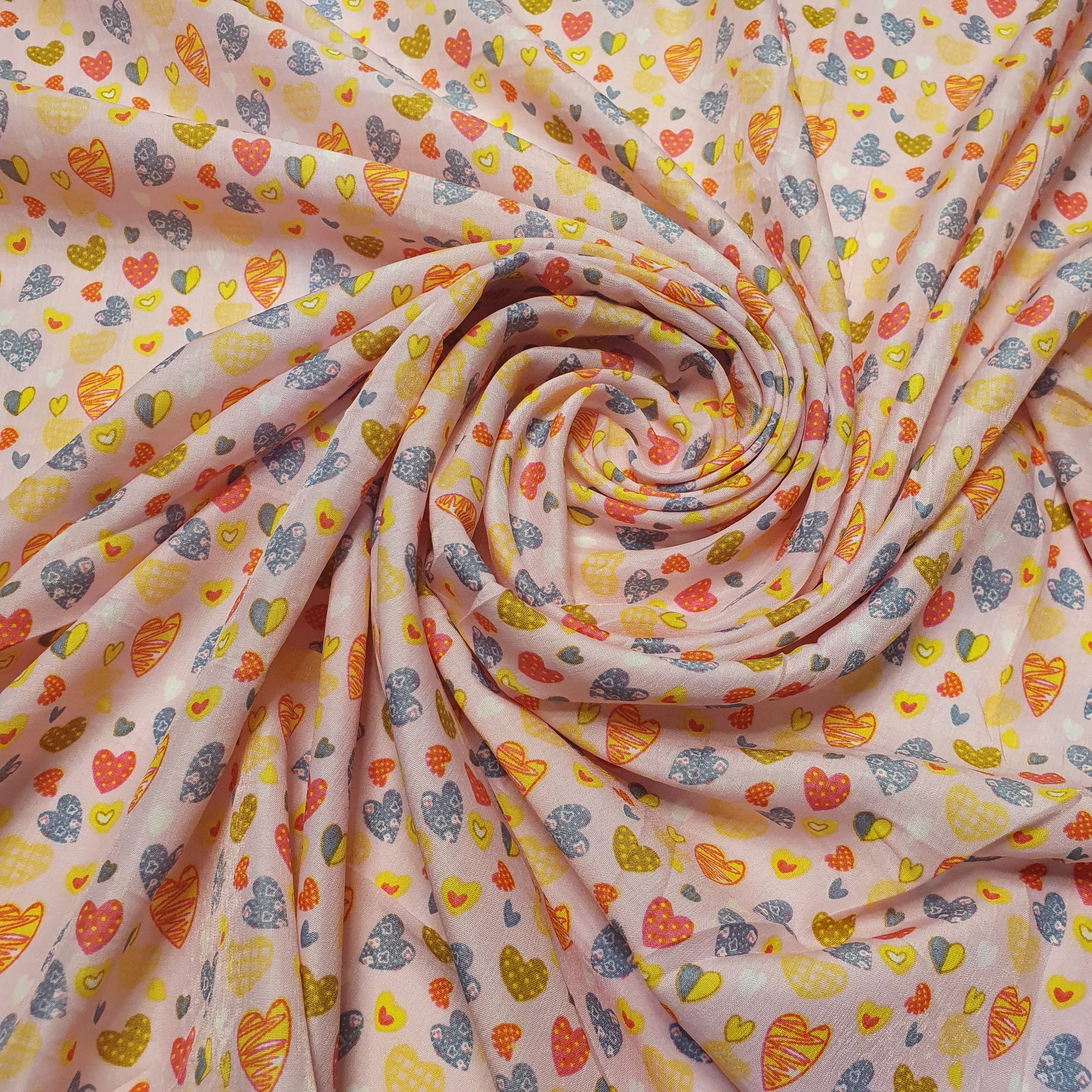 Peach Multi Heart Crepe Printed Fabric Sewing Craft Spot Quilting Dress Material 58" By the Meter